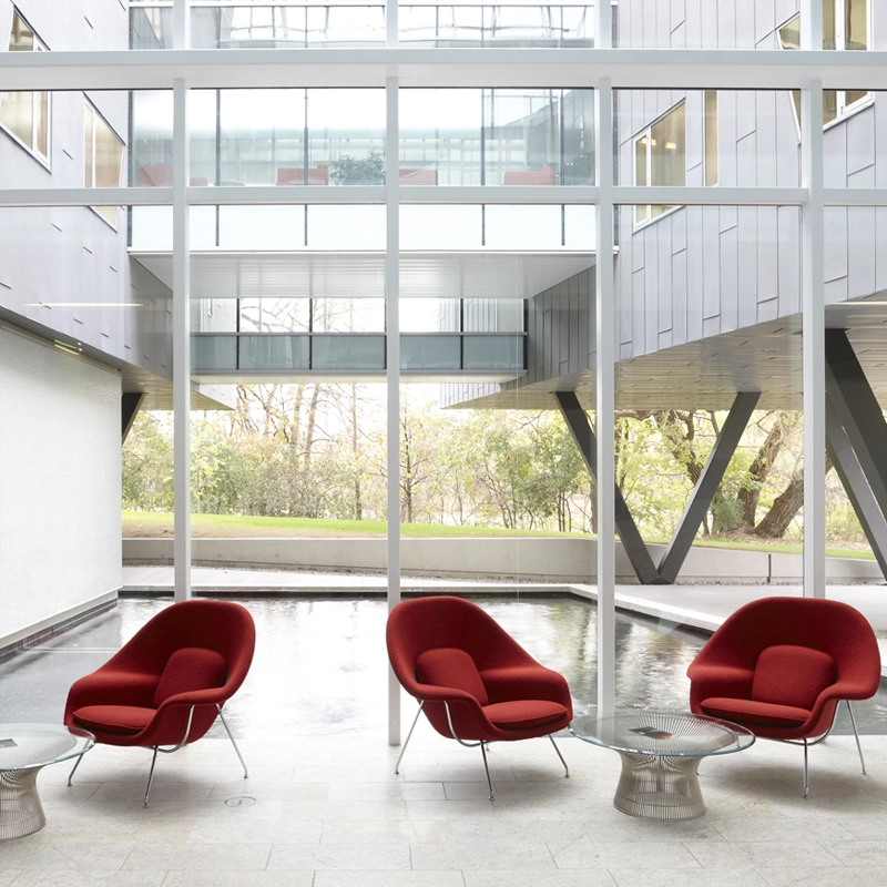 Knoll, an iconic brand of contemporary design furniture, has embodied the perfect blend of innovation, modernism, and timeless aesthetics for over 80 years. Founded in 1938 in the United States by Hans and Florence Knoll, the company has established itself as a global reference in high-end design furniture. Among its most iconic creations are the Saarinen table and the Tulip chair, designed by the renowned designer Eero Saarinen, as well as the Bertoia collection, the Platner lounge, and the legendary Barcelona chair.