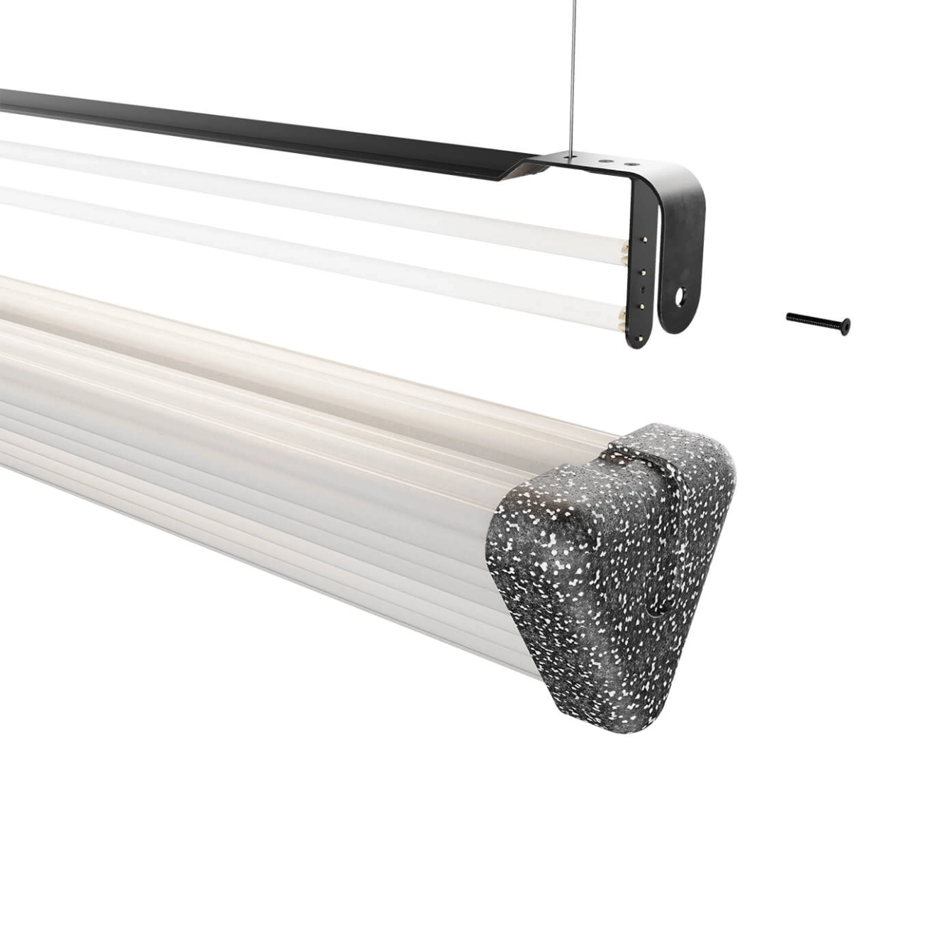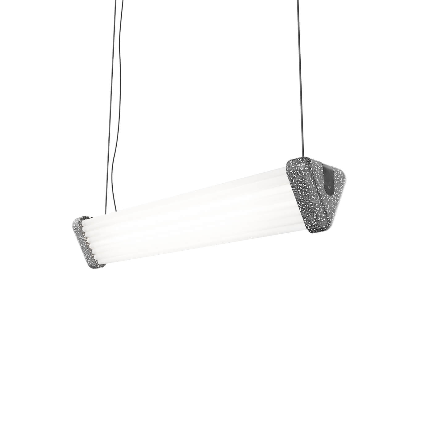 Expanded polystyrene, HS fluorescent tubes, black cable trimmings, powder-coated steel, black zinc-plated screws and bolts