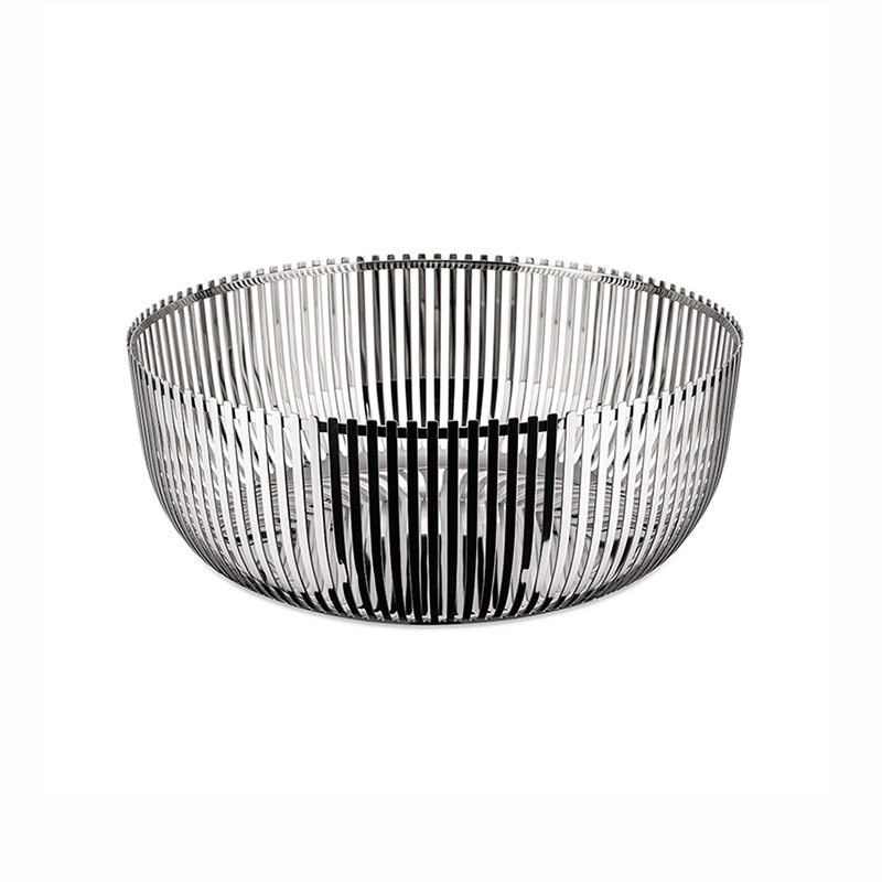 Pierre Charpin, one of the leading figures in contemporary French design, has designed the PCH05/30 fruit holder in 18/10 stainless steel for Alessi. It is part of a collection of refined baskets inspired by the trays in the galleries of the 18th and 19th centuries, reinterpreted in a more contemporary version. This everyday accessory is presented here in a sober form, with a classic, elegant design to take its place in your kitchen or on a dining room table.