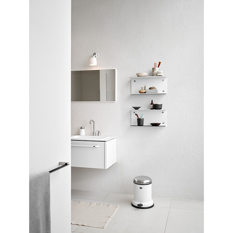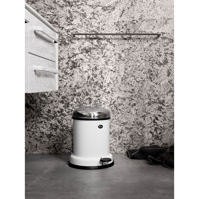 The Vipp13 4L pedal bin is the smallest of the pedal binsVipp, ideal for the bathroom. This 4L pedal bin is equipped with a removable inner bin, a lid that guarantees an airtight seal and a shock-absorbing mechanism that offers a gentle lid closure. A rubber ring at the base protects the floors. The Vipp 4L pedal bin owes its aesthetics to a series of functional criteria; one of them being a pedal for hands-free use. The Vipp13 requires minimal space and fits into the smallest of spaces. The Vipp pedal bin comes in 5 different sizes and 4 different colours: black painted steel, white, beige and stainless steel.