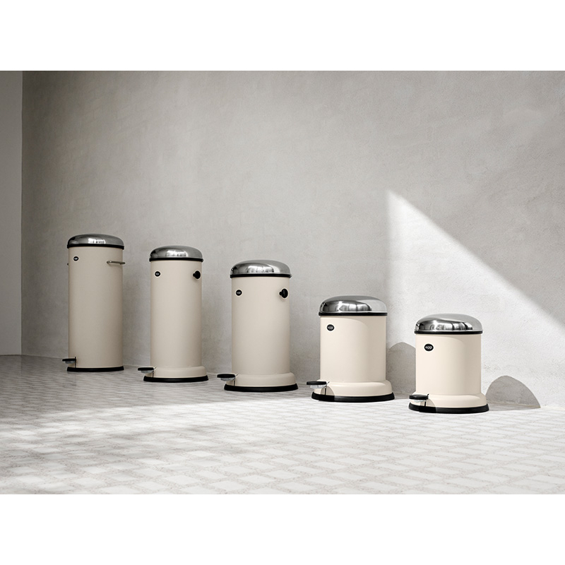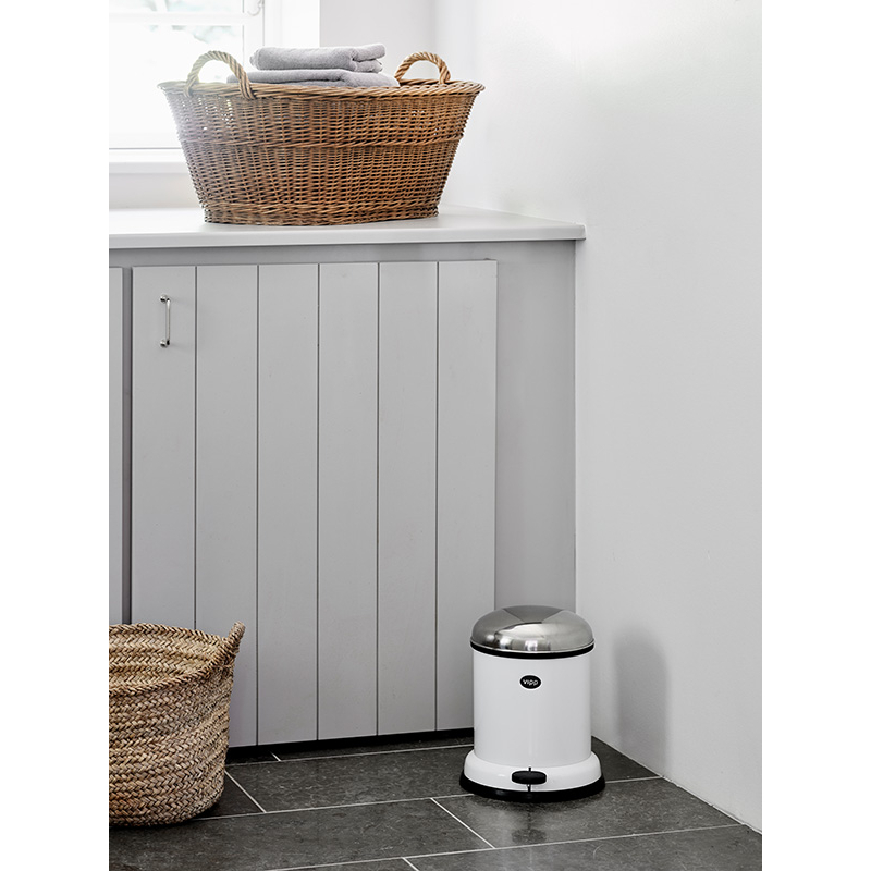 The Vipp13 4L pedal bin is the smallest of the pedal bins Vipp, ideal for the bathroom. This 4L pedal bin is equipped with a removable inner bin, a lid that guarantees an airtight seal and a shock-absorbing mechanism that offers a gentle lid closure. A rubber ring at the base protects the floors. The Vipp 4L pedal bin owes its aesthetics to a series of functional criteria; one of them being a pedal for hands-free use. The Vipp13 requires minimal space and fits into the smallest of spaces. The Vipp pedal bin comes in 5 different sizes and 4 different colours: black painted steel, white, beige and stainless steel.
