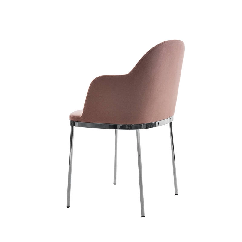 Precious collection is available in a wide variety of fabrics and finishes, and pays particular attention to detail. The steel legs of the chair are extremely slim and the seat base, with its minimalist design, is reminiscent of a thin ring or wedding band. Available in a version with or without armrests,