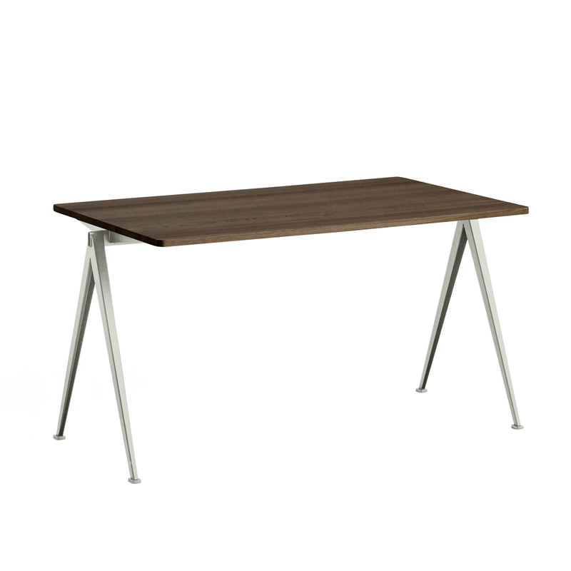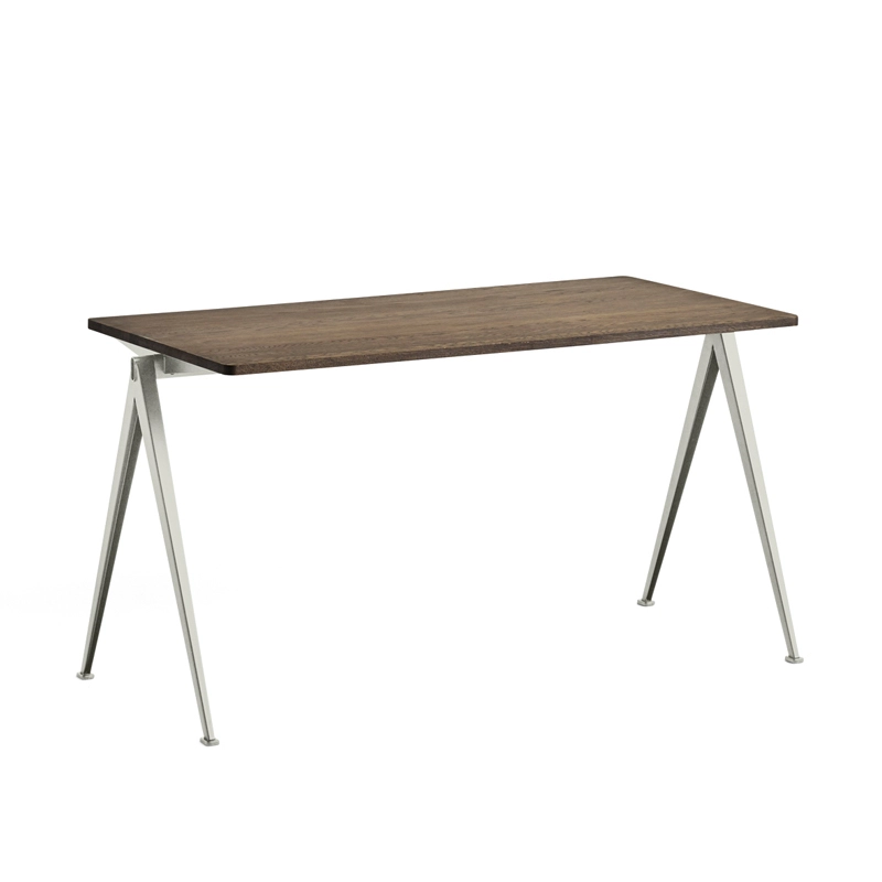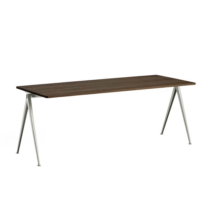 Pyramid tables are the result of an innovative use of sheet steel on a product with an organic, contemporary shape. Complemented by a slim sheet steel base, the rectangular oak top gives the