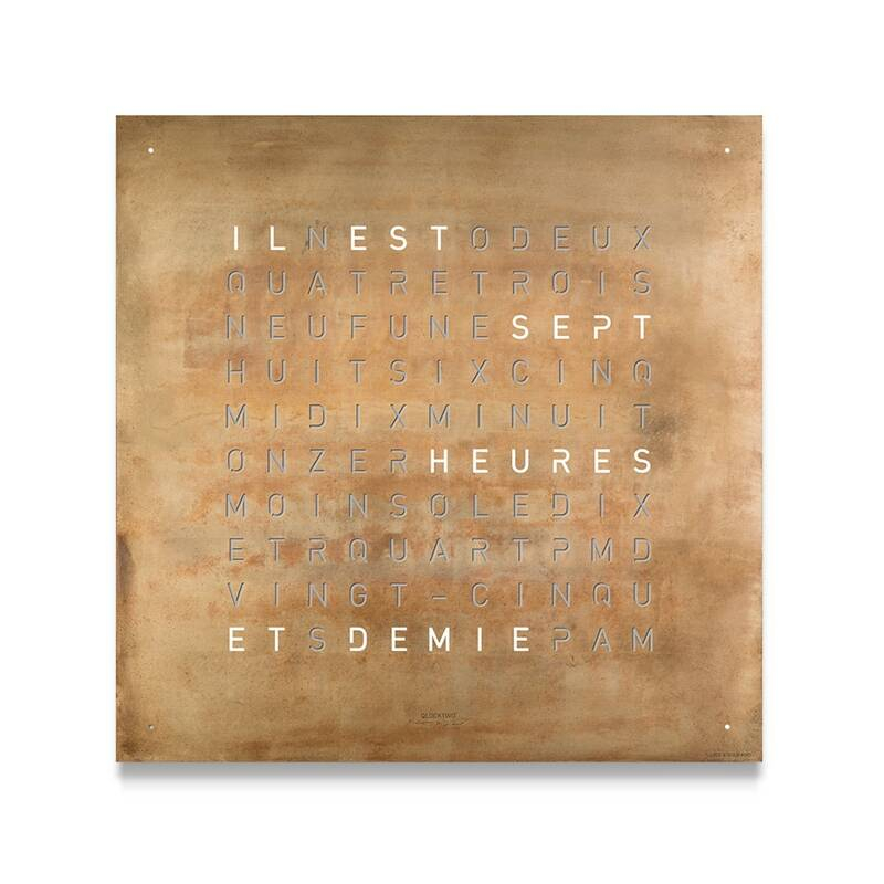 QLOCKTWO Classic is a clock that's an ally in your daily life and allows you to have a different conception of time. The idea of this clock is to find another way of presenting and perceiving time. This is because QLOCKTWO has chosen to indicate the time using words rather than numbers. No hands, no numbers and no more turmoil in your already hectic everyday life. With the typographic display, the time display becomes a statement and marks a pause. Unique in their kind, QLOCKTWO Creator's Edition clocks are signed and numbered by laser engraving. The Gold version has hand-applied gold leaf. Vintage Copper is inspired by copper roofing and coins and has a unique surface. The Rust version is made of hand-rusted raw steel. Finally, the Silver & Gold version, covered with white-gold leaf, evolves over time as the patina weathers with the oxidation of the silver. It is available in 20 languages and different configurations, making it a key ally at home or in the office.
