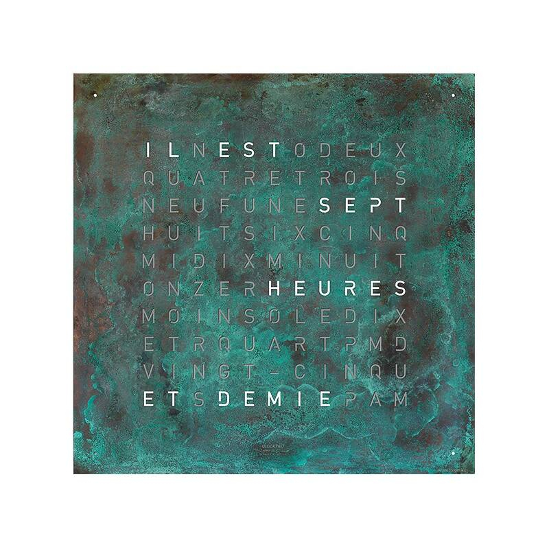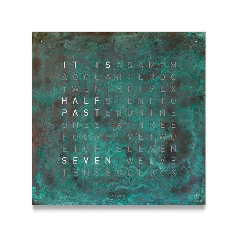 QLOCKTWO Creator's Edition clocks are signed and numbered by laser engraving. The Gold version has hand-applied gold leaf. Vintage Copper is inspired by copper roofing and coins and has a unique surface. The Rust version is made of hand-rusted raw steel. Finally, the Silver & Gold version, covered with white-gold leaf, evolves over time as the patina weathers with the oxidation of the silver. It is available in 20 languages and different configurations, making it a key ally at home or in the office.