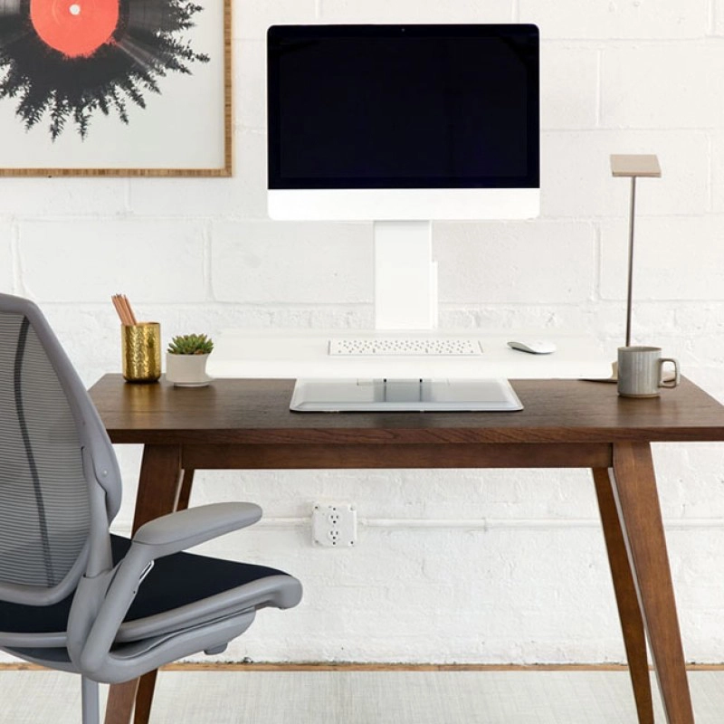 Humanscale embodies the next generation of removable sit/stand solutions. Both modern and easy to use, it is made from the most durable materials, standing out from the current generation of sitting/standing desks. The work area is designed for use with laptops and a single or double screen.