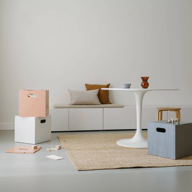 With Cube, Danish brand Nofred offers a practical, aesthetically pleasing 3-in-1 piece of children's furniture. Cube is a highly versatile container with a lid that's easy to open and close. The Cube storage from Nofred is perfect for keeping tidy and tidying up easily after playing. It can also be used as a bedside table or a seat for children anywhere in the home. The rangement Cube is also perfect in the hallway for storing shoes, while also acting as a seat for children to easily put on or take off their shoes. Cube is delivered disassembled. The package contains everything you need to assemble it easily.