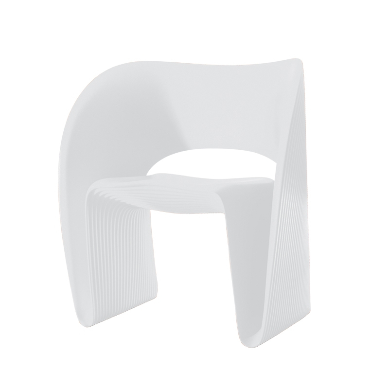 Raviolo is a stunning piece by Ron Arad for Magis. The designer's inimitable and unmistakable style can found in this armchair, which acts as both a piece of furniture and a sculpture.The lines are playful and dominated by curves, giving this chair an ethereal and extremely graphic look. Raviolo is made of rotomoulded plastic, suitable for both indoor and outdoor use, and has an opening that lightens the structure. One-piece polyethylene resembles soft ribbons of fabric, with sinuous curves and exceptionally fluid lines. Here, the material is used unconventionally by the creator, playing on the effects of perspective, mixing solids and voids depending on the viewer's viewpoint. Raviolo provides unrivalled comfort thanks to its generous and welcoming shapes that hug the body. Original, playful and available in bright colours, Raviolo is the perfect armchair for your terrace or dining room.