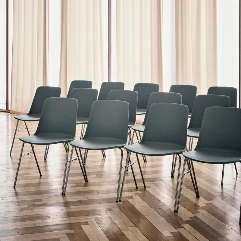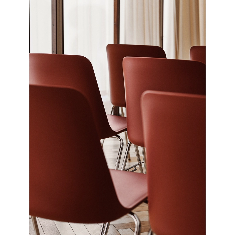 Edited by And Tradition, Rely is a chair with ecological origins.  For his design, Hee Welling spent a year researching the perfect material. The simple appearance of the chair and its ergonomic design embody the fusion of minimalism and practicality. The modern hull of Rely is made entirely from recycled plastic. The latter is available in a range of contemporary colours. The inventive recycling process set up by the designer recovers post-industrial waste. Once it is crushed into small pieces, the colour is mixed in and then the material is prepared for injection moulding. Clearly, sustainable development is a priority. If the chair is to be repaired, the designer has made it easy to dismantle in order to prolong its life. Each of the curves has been developed to provide optimal back support. Welling emphasises the importance of details for a balanced and harmonious result. In the HW27 version, the base is fitted with a hook system to link the chairs together.