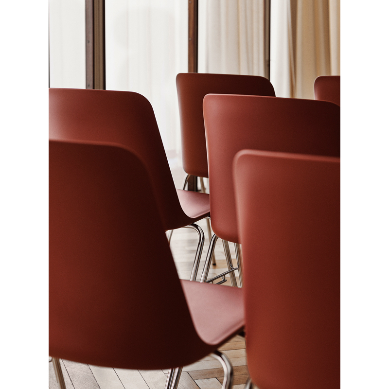 Rely is made entirely from recycled plastic. The latter is available in a range of contemporary colours. The inventive recycling process set up by the designer recovers post-industrial waste. Once it is crushed into small pieces, the colour is mixed in and then the material is prepared for injection moulding. Clearly, sustainable development is a priority. If the chair is to be repaired, the designer has made it easy to dismantle in order to prolong its life. Each of the curves has been developed to provide optimal back support. Welling emphasises the importance of details for a balanced and harmonious result. In the