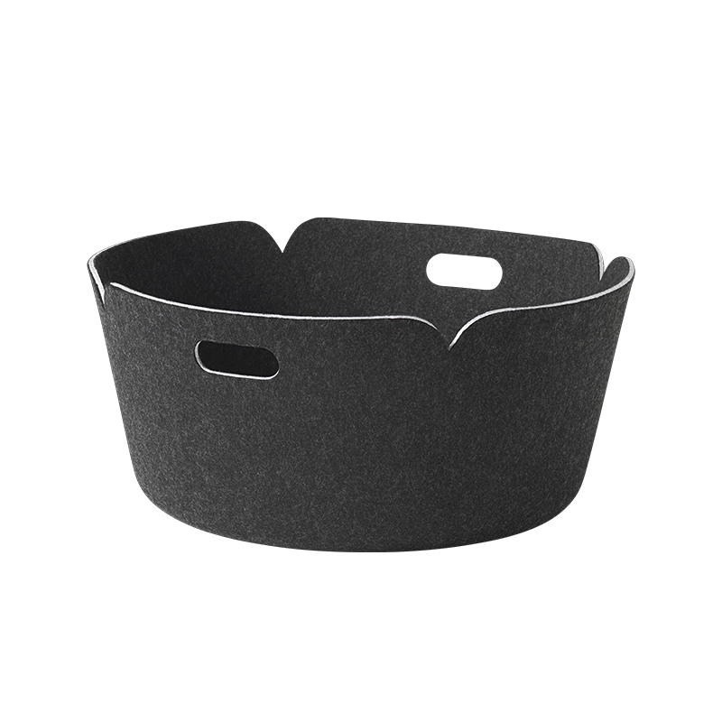 Mika Tolvanen's Restore series for Muuto has been expanded to include this large, round, elegant and functional basket. 100% ecological, it is made of felt produced from plastic bottles. The Restore finish gives the object a certain refinement so that you can show it off in your living room or bedroom. You'll always find something to fill it with: newspapers, cosmetics, toys, and more. Use this large basket for whatever takes your fancy.