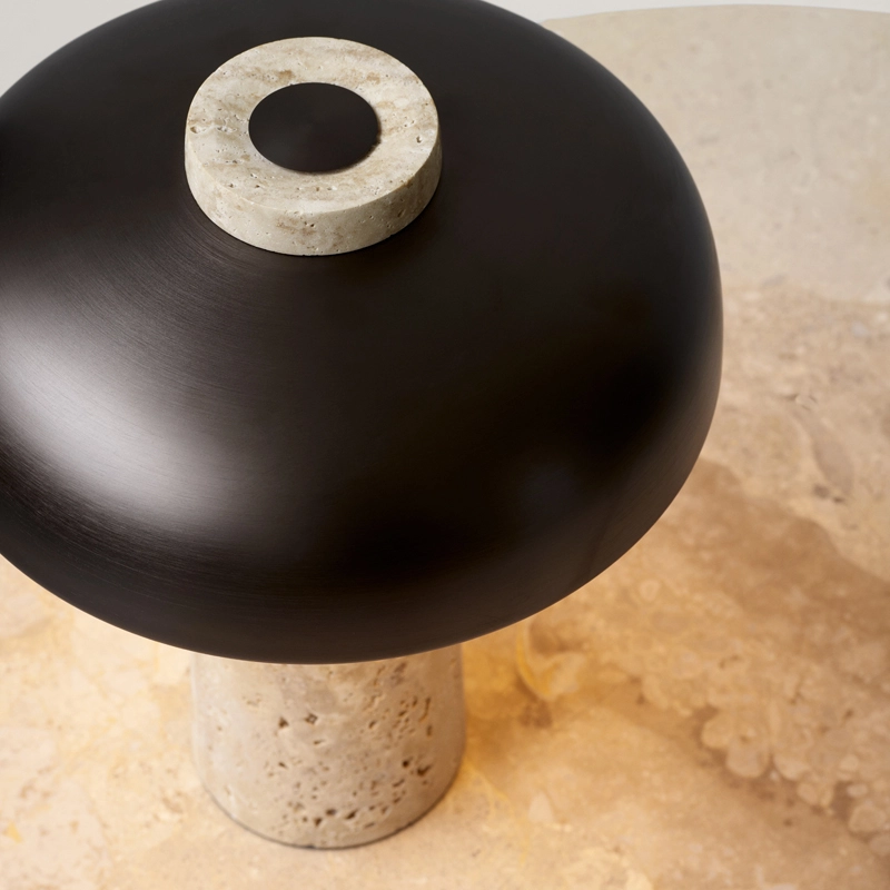 Reverse, define the lamp's perfectly balanced expression. Light diffuses uniformly onto the expressive, raw, unrefined stone from the curved lampshade. The light reveals shadows and an intriguing set of colours that seem to appear from the base itself. At the precise point where the shade and base meet is a dimmer to adjust the intensity of the light. Equipped with a dimmable LED light source, the