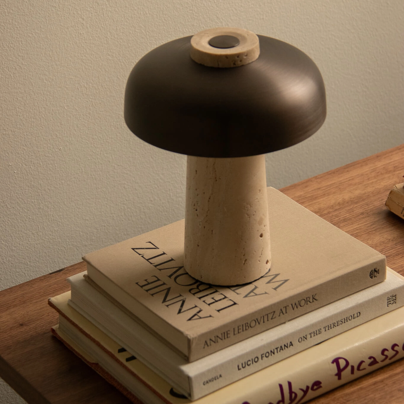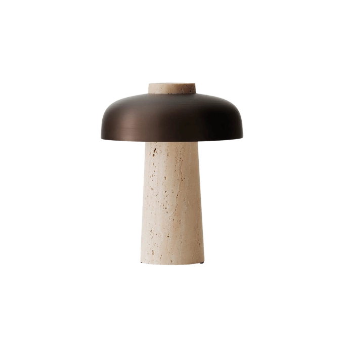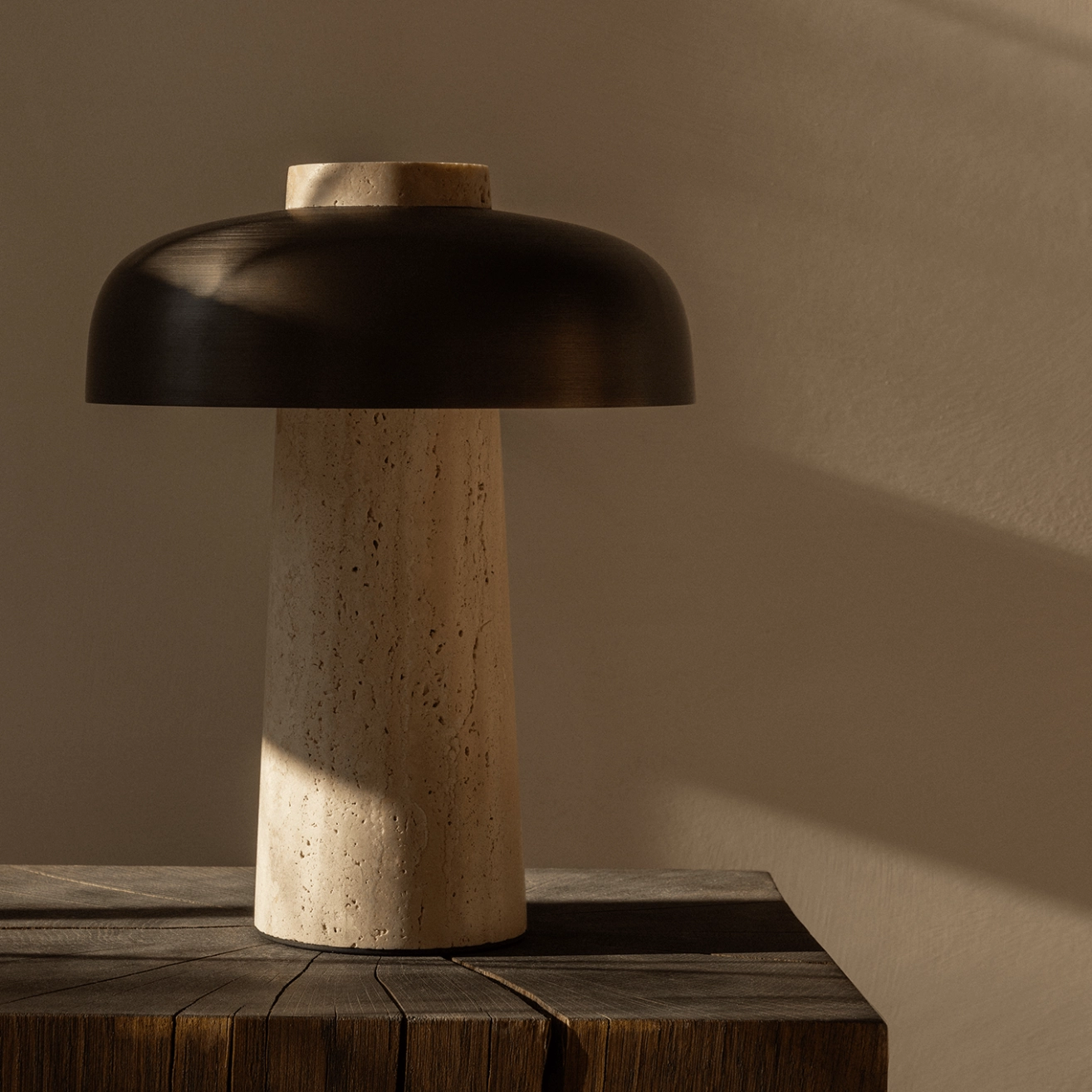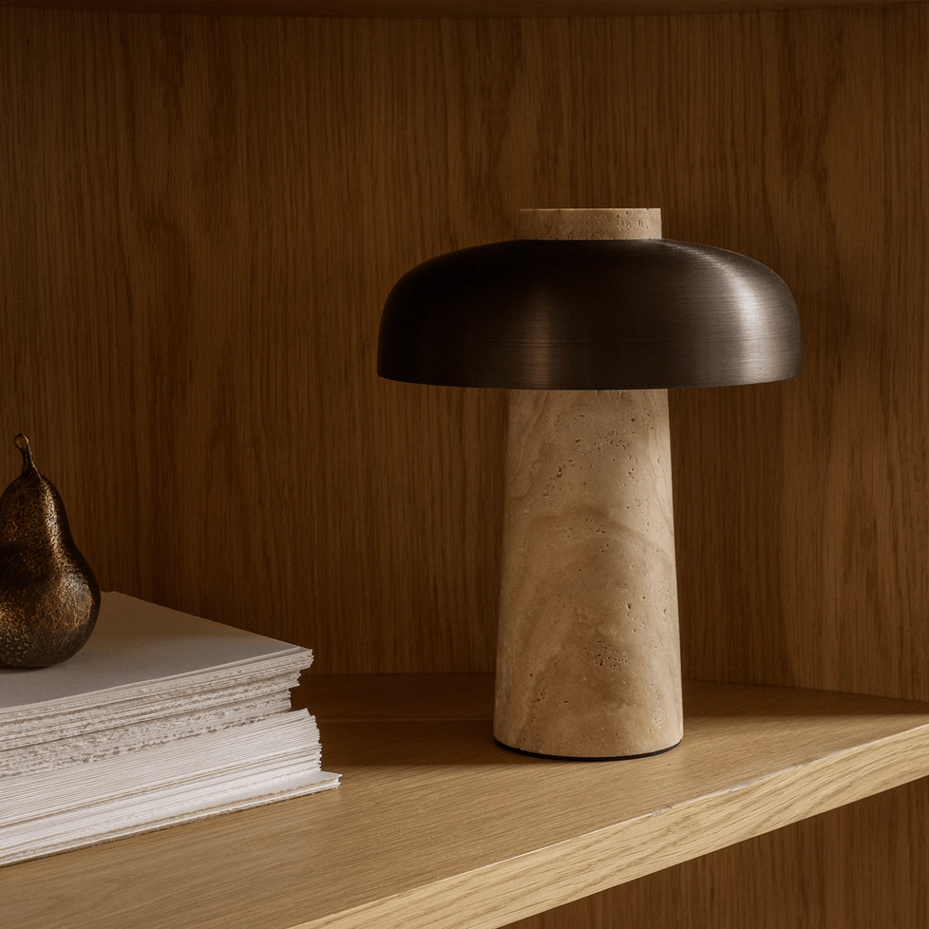 Audo Copenhagen’s Reverse Portable Travertin Bronzed Aluminium table lamp embodies an approach to contemporary design where mobility is combined with a refined material expression. Designed as a portable design table lamp, it naturally fits into high-end residential interiors as well as hotel or tertiary projects, finding its place on a table, shelf or sheltered terrace, where it brings a soft and controlled light. The combination of travertine and tanned aluminium gives the Reverse Portable lamp an elegant, mineral-like presence, while its balanced lines and cable-free design allow for great freedom in everyday use. True to the DNA of Audo Copenhagen, this lamp prioritizes the legibility of form and the harmony between aesthetics and function, making lighting a real element of interior staging. Thought as an object of sustainable design, it accompanies uses with flexibility and precision, combining design quality, bright comfort and material sophistication at the service of the project.