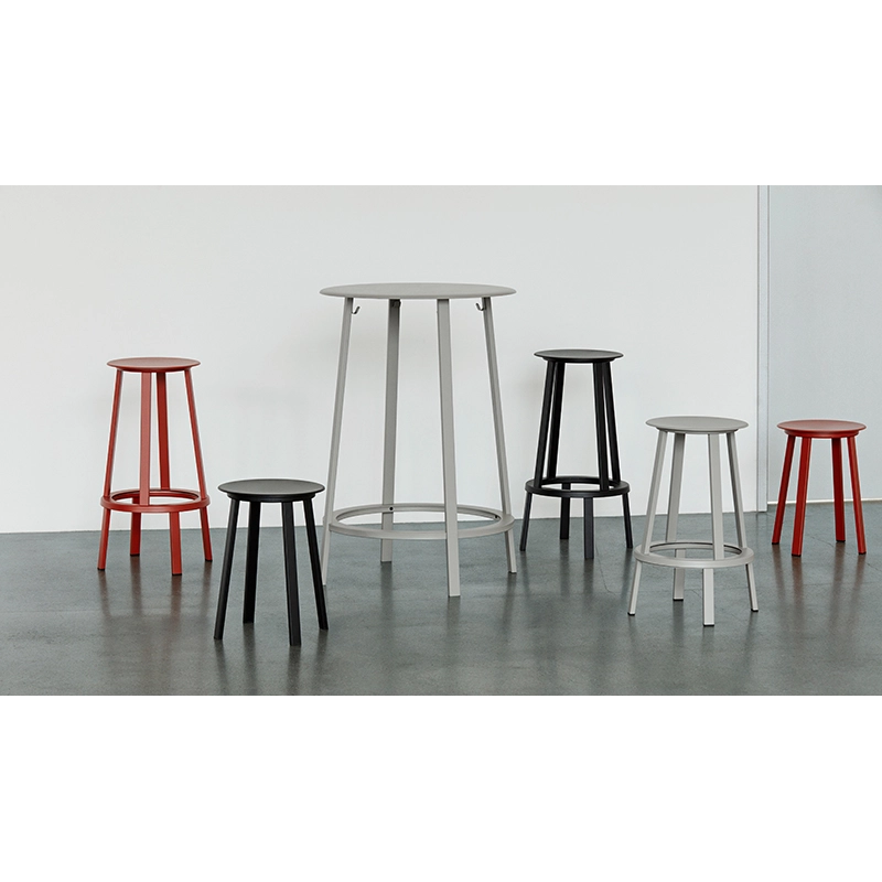 Designed by Leon Ransmeier for the Hay brand, the Revolver high table is made from epoxy-finished steel and features the same edges, curves and sense of symmetry as the stool in the same collection. Functionally, the Revolver table has a circular footrest that serves as a support, while hooks on the table legs allow coats and bags to be hung securely underneath. Available in a range of colours, the table haute Revolver is suitable for a wide range of cafés, restaurants and other public venues.