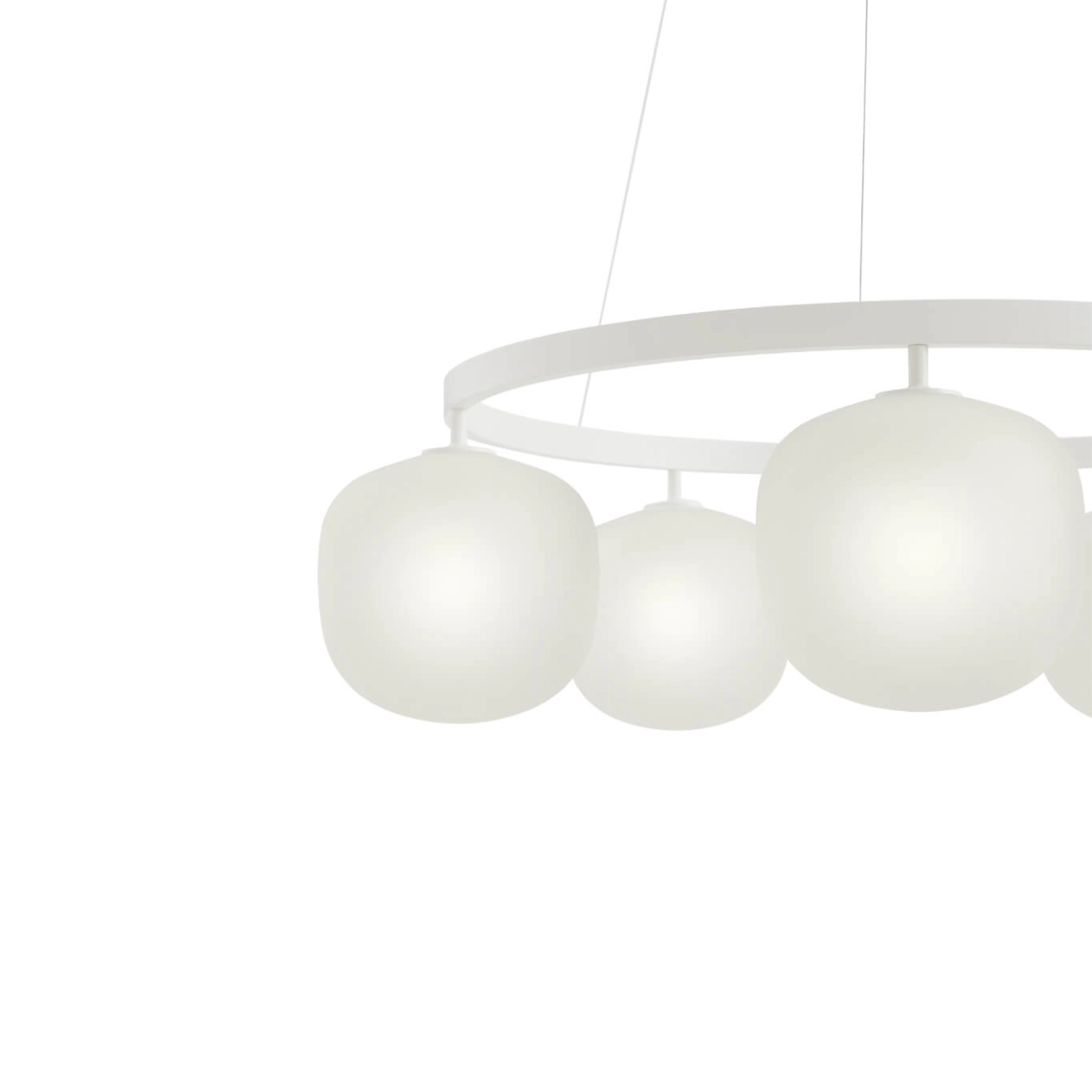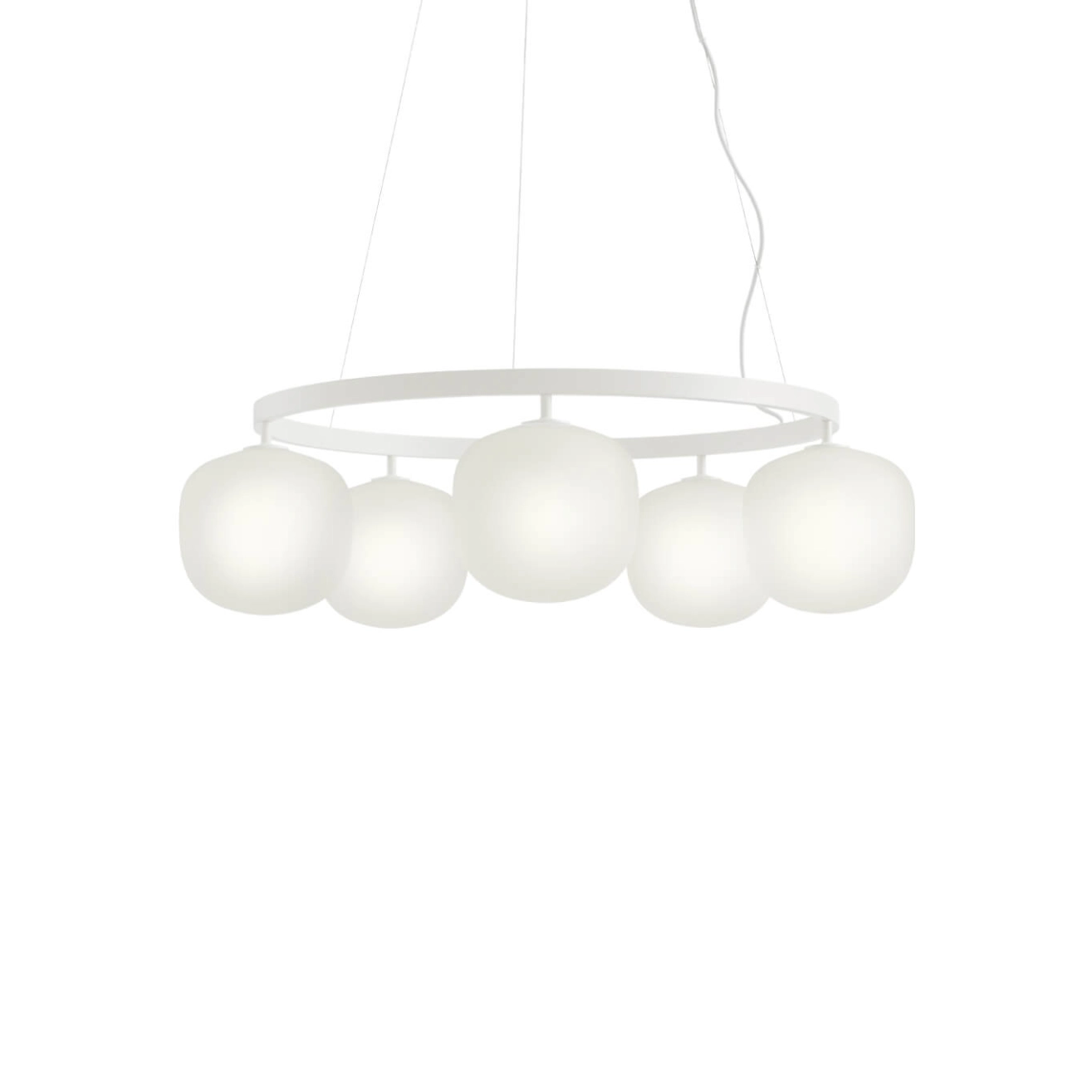 A contemporary reinterpretation of the classic chandelier, the Rime Chandelier by Muuto brings sculptural elegance to any interior. With its organic form inspired by acorns and traditional lanterns, this light fixture diffuses a soft, ambient light through its sandblasted glass, creating a warm and welcoming atmosphere. The Rime Chandelier, designed by the renowned Swedish design duo TAF Studio, is distinguished by the perfect tension between its commanding visual presence and its apparent lightness. Each glass globe is carefully mouth-blown, reflecting Muuto's commitment to high-quality craftsmanship. The geometric structure of the Rime Chandelier allows it to frame a space with finesse, whether placed above a dining table or in a majestic entryway. Combining technical precision and poetry, the Rime Chandelier is more than just a light source; it is a centerpiece that draws the eye without ever overwhelming the room. Its refined finish and harmonious proportions make the Rime Chandelier a preferred choice for those seeking a timeless design capable of instantly transforming the aesthetic of a space.