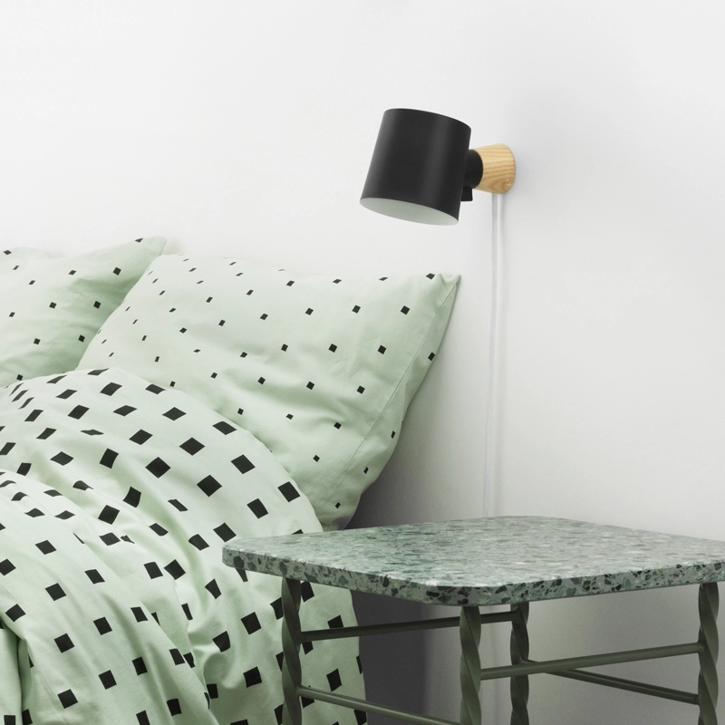 Marianne Andersen has created the Rise wall light for Normann Copenhagen. Sober and light, its pure lines represent the harmony between minimalism and welcoming allure. Simplicity was the designer's guiding principle during the conception of the applique Rise. Marianne Andersen wanted to create an immediate and intuitive object, showing only its essential elements.It consists of a base made of ash wood and a cylindrical lampshade assembled by means of a swivel joint, which allows the diffused light to be directed, causing the lampshade to rotate on the base. So, with a simple movement, you can switch between direct and indirect lighting, making Rise an ideal lamp for reading as well as contributing to the mood of the room. The Normann Copenhagen wall light is available in three neutral shades, white, black and grey, as well as an elegant petrol green and a bright yellow.