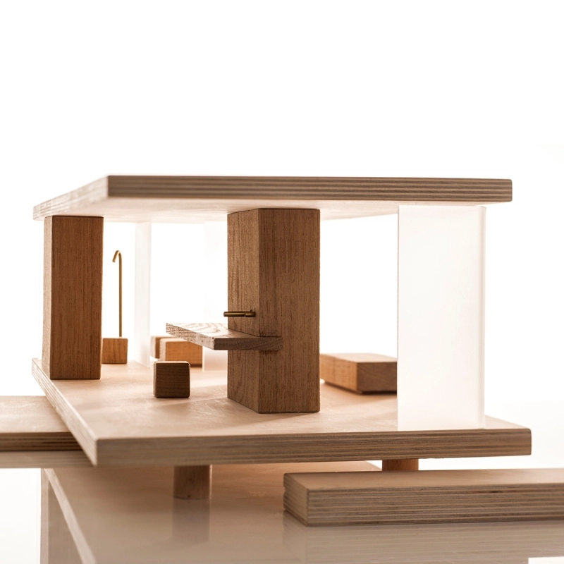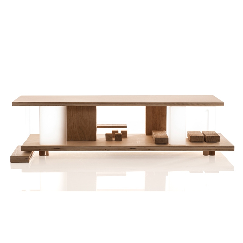 Created by Sirch, Rive Gauche is different from traditional dolls' houses. Its very streamlined design, seemingly inspired by Mies Van der Rohe's architecture, gives free rein to children's imagination. Accessible from its 4 sides, it includes 4 stools, 2 beds, a kitchen worktop, a sofa and an aluminium shower and 4 independent plexiglass panels, which can be moved to create different types of spaces. A dolls' house that will delight children and give free rein to their imagination.