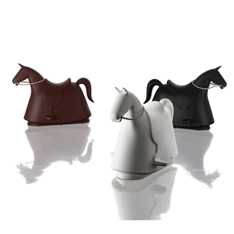 Produced by Magis, Rocky is the ideal companion for all budding adventurers. Designer Marc Newson has reinterpreted the traditional rocking horse in a more modern version made of polyethylene. Rocky has an integrated saddle and stirrups and a rope rein made of natural hemp. This playful little piece gently rocks on its base, allowing the horse to remain stable in all circumstances. Available in black, white or brown, Rocky fits perfectly in a child's bedroom, making an original gift idea.