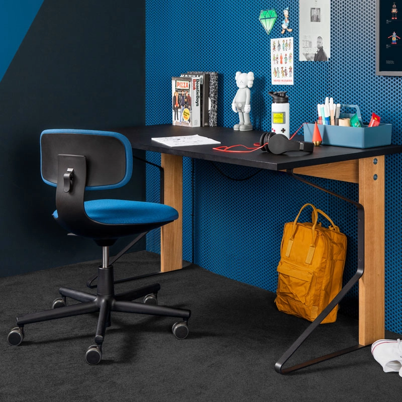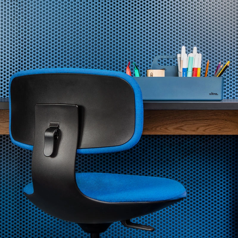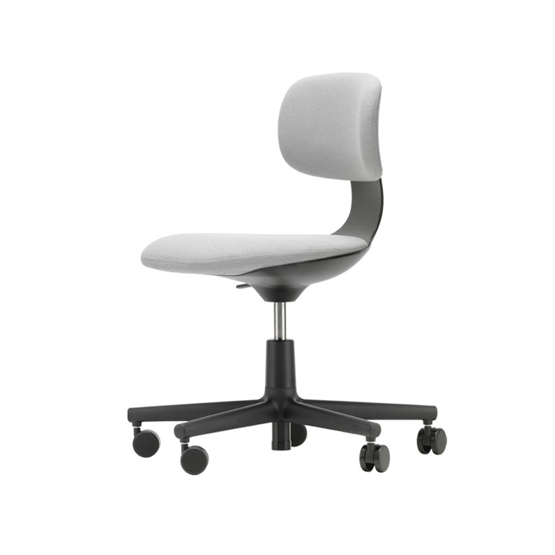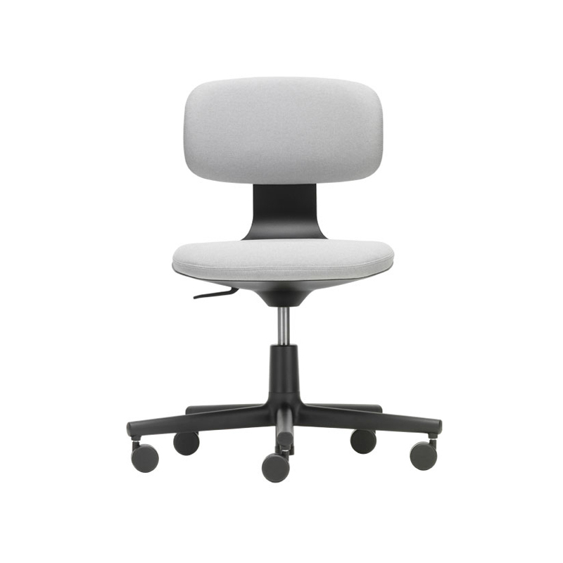 With affinities to Allstar, the first office chair developed by Konstantin Grcic for Vitra, Rookie is an excellent solution for environments where users are used to being mobile. Agile and unconventionally simple, Rookie is an adjustable office chair published by Vitra that offers a high level of comfort. The polypropylene seat is height-adjustable and allows for optimal ergonomics, adapting quickly to everyone. In addition to these classic work seat functions, Rookie features a backrest that flexes slightly when pressure is applied. The fabric upholstery of Rookie is available in a variety of colours, allowing different combinations to be created with the light or dark version of the base.