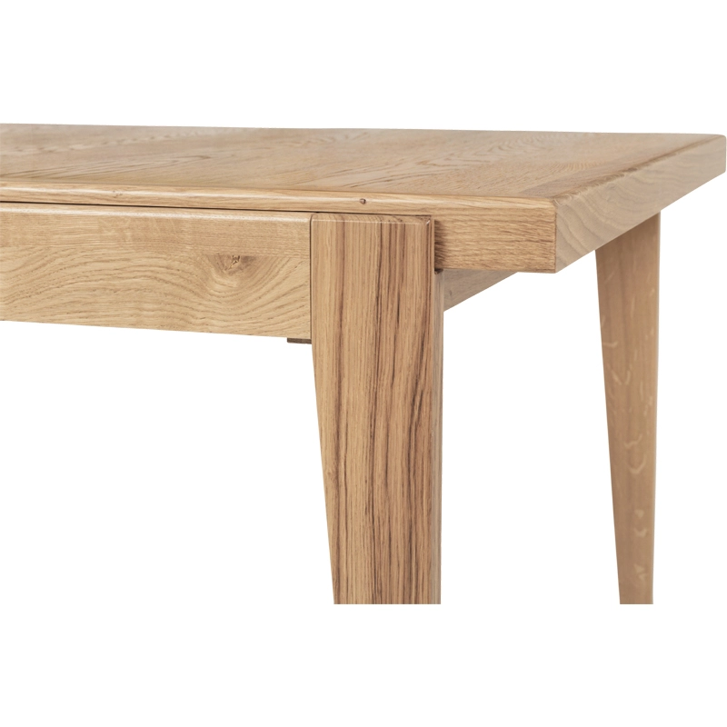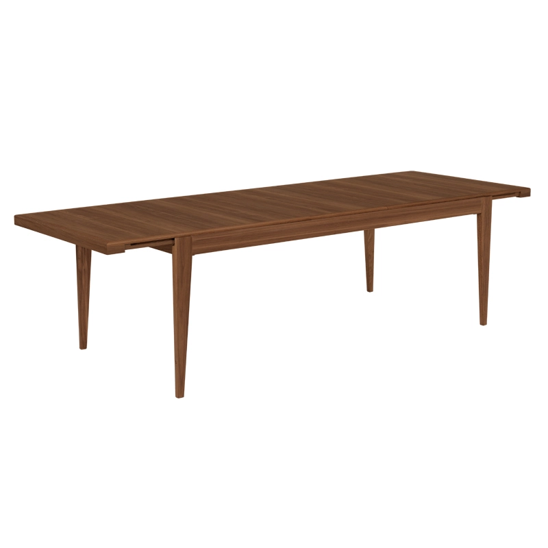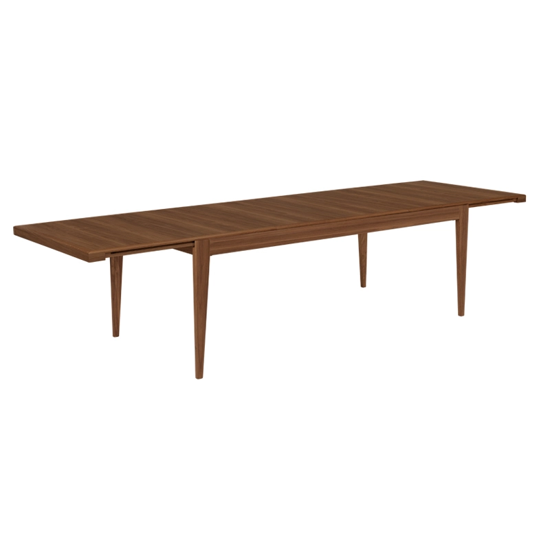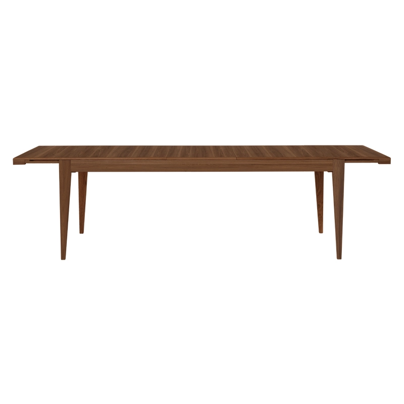 The rectangular tabletop slides to allow the two carefully concealed extensions to be inserted in place, offering options for six, eight or ten guests. The