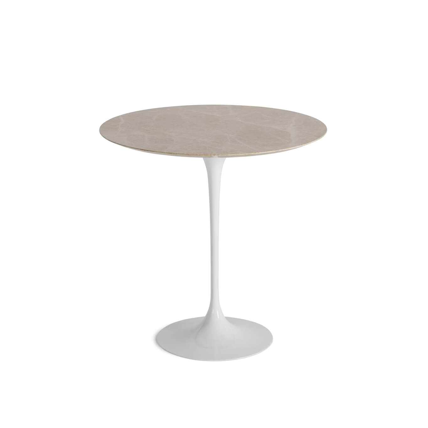 Designed in the 1950s, Eero Saarinen's tables are classed as cult pieces of furniture in the history of design. Timeless, imitated but never equalled, they combine understated style with elegance and lend themselves to all interiors. The Saarinen table top is characterised by a bevelled edge that accentuates its lightness, regardless of its size. The side table is available with a laminate or a marble top.