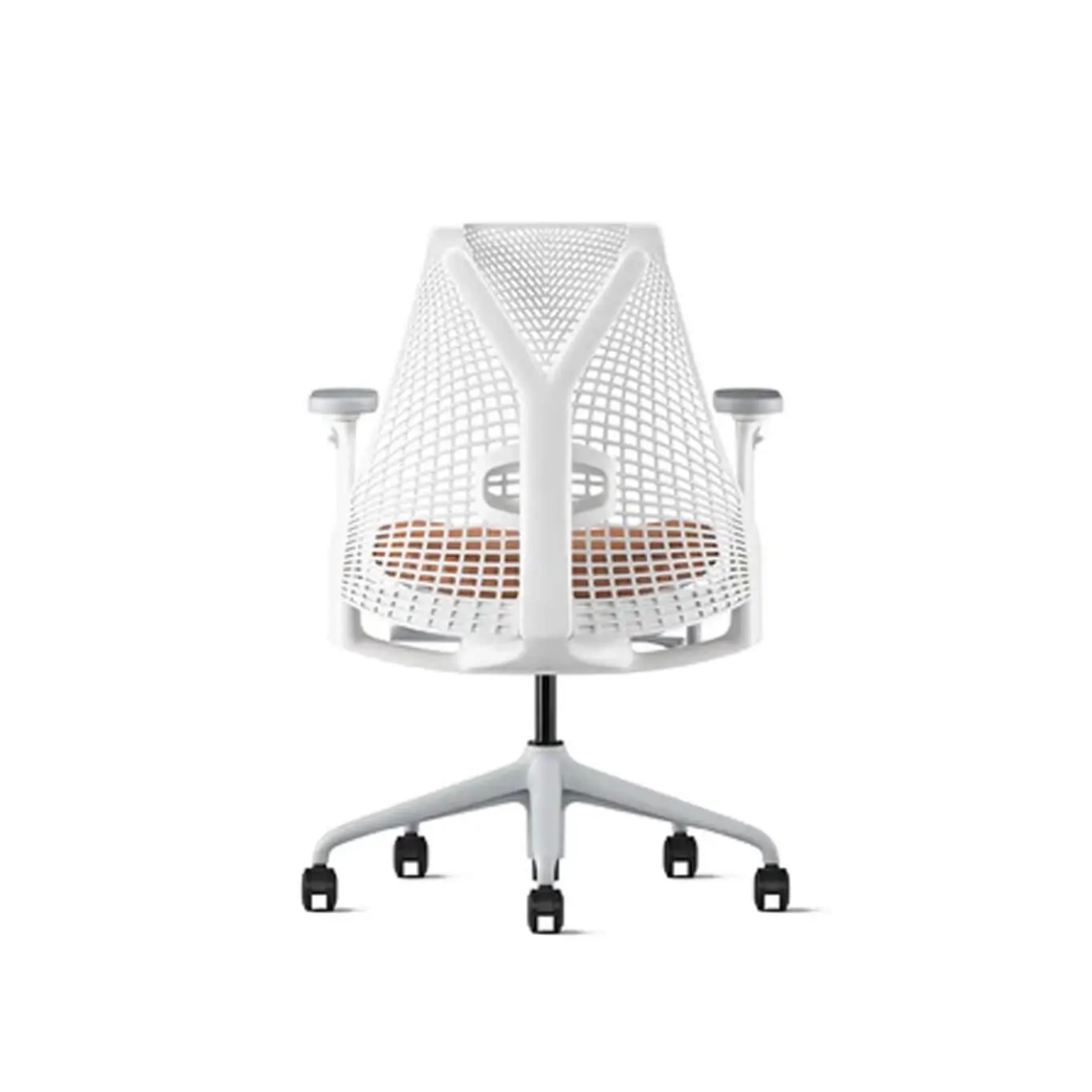 The Sayl office chair in Blanc/0612, designed by Yves Béhar and produced by Herman Miller, is inspired by the architecture of suspension bridges, offering maximum support with minimal material use. Featuring a 3D Intelligent® elastomer back and the iconic Y-Tower® structure, it adapts naturally to the user's movements. This chair comes equipped with Harmonic™ tilt including a tilt limiter and forward tilt option, adjustable lumbar support, a seat with adjustable depth, and fully adjustable armrests. The Sayl is PVC-free and up to 90% recyclable at the end of its life. Its glass-fiber reinforced nylon frame and die-cast aluminum base ensure strength and durability. It also features dual-purpose casters suitable for hard floors and carpets.