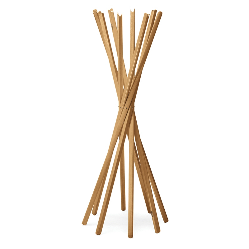 Sciangai is a clever coat rack and a cult design object. Created in 1973 by designer trio Jonathan de Pas, Donato d'Urbino, and Paolo Lomazzi, it is produced by the renowned Zanotta company. Made of beech or oak, the coat hanger opens up to hold clothes and accessories, much like a game of pick up sticks. Bundled together, the pieces of wood create a stunning effect and once folded, Sciangai can be tucked away discreetly in a corner. Its lightweight structure makes it easy to move around your home, as required. Highly functional and sculptural, Sciangai is a design classic and is now featured in a number of museum collections. It has received the "Compasso Oro" award for its outstanding aesthetics, functionality and natural elegance.
