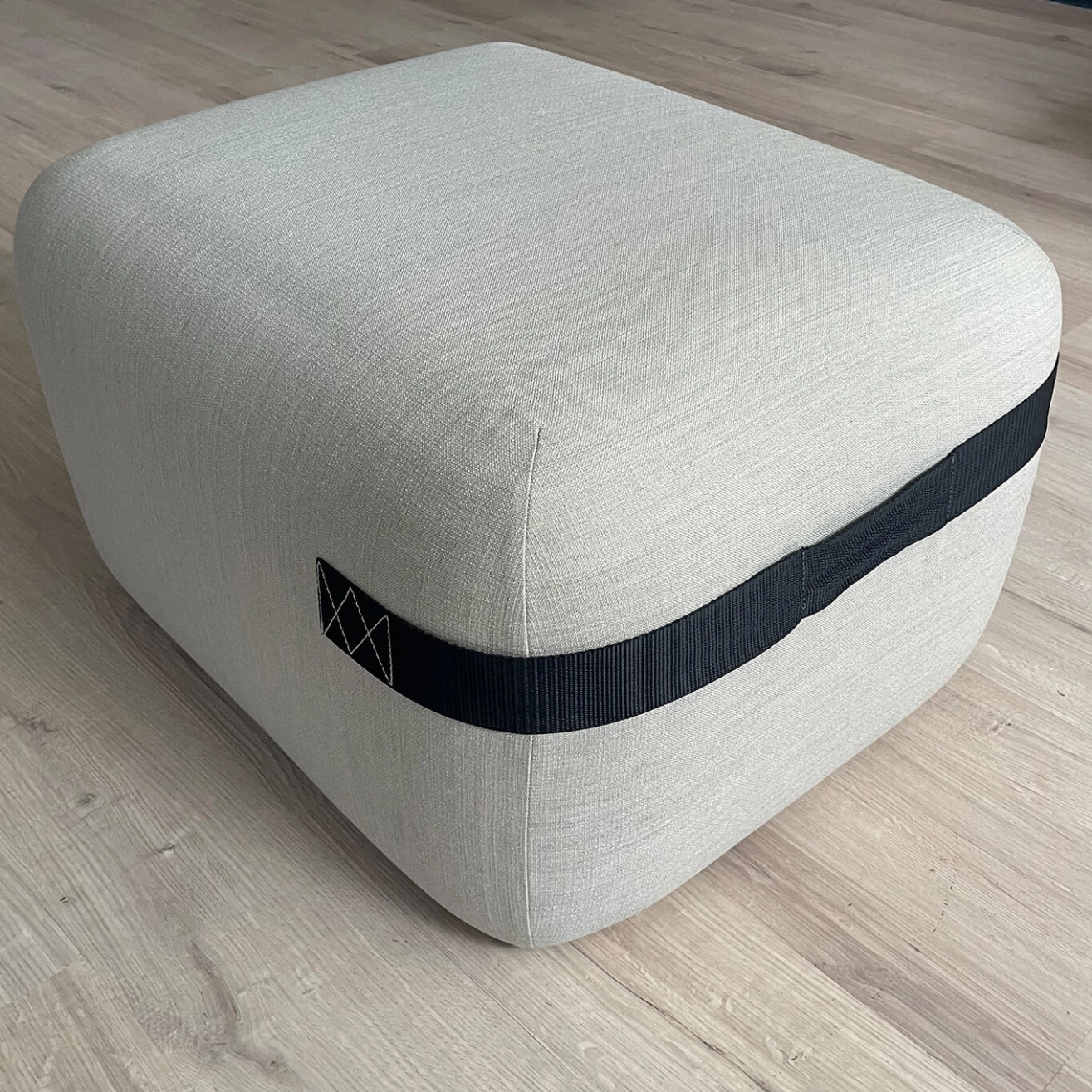 Designed by Piero Lissoni for Viccarbe, the Season Mini is a standalone pouf, a variation of the famous Season bench, offering great practicality thanks to its integrated handle in the upholstery. Versatile and clever, it can combine various fabrics and leathers with handles in different colors. The Season Mini pouf second-hand by Viccarbe is a perfect example of a comfortable piece of furniture for offices, restaurants, reception areas, and more. The second-hand Season Mini pouf adapts to all needs and spaces.