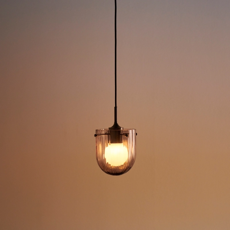 Designed by Space Copenhagen for Gubi, the Seine lamp collection is inspired by the reflection of light in moving water. The lamp's patterned mouth-blown glass captures this fascinating effect and uses the power of glass to soften and layer the light. The burnished brass contrasts elegantly with the mouth-blown glass and adds finesse and elegance. The Seine pendant lamp is available with a smoked shade that slightly tones down the light but remains transparent, allowing the beautiful internal structure of the glass to be admired. The lamp is also available with a coral-coloured shade, with a sandblasted interior that gives a misty effect and a softer light. Suitable for use throughout the home, the Seine Gubi collection includes a pendant lamp, a wall lamp and a table lamp.