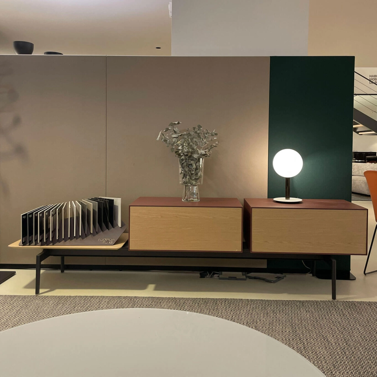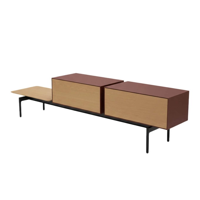 Semiton is an adaptable piece that brings structure, surface and storage solutions to any environment. Its wide range of shelving and storage modules, combined with an extensive selection of finishes, allows for almost unlimited configurations. The system can easily transform, complement other elements and adapt to every stage of life, in both residential and professional settings. Whether used as an architectural structure to define a space or as a statement piece,