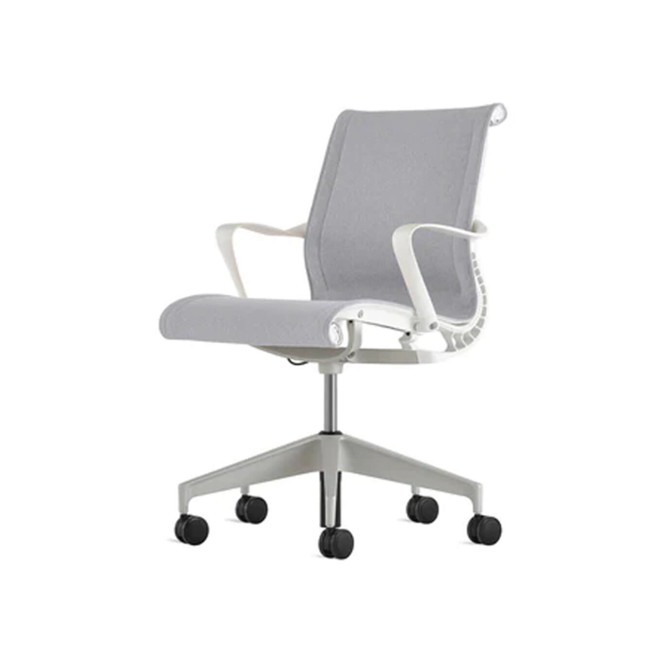 The Setu Refresh office chair with Gloss / Studio White fixed armrests, designed by Studio 7.5 and produced by Herman Miller, offers a unique combination of flexibility and strength that meets the demands of today’s increasingly collaborative workspaces. Its dynamic, dematerialized lumbar support flexes and adapts to every movement, providing continuous comfort ... Learn more