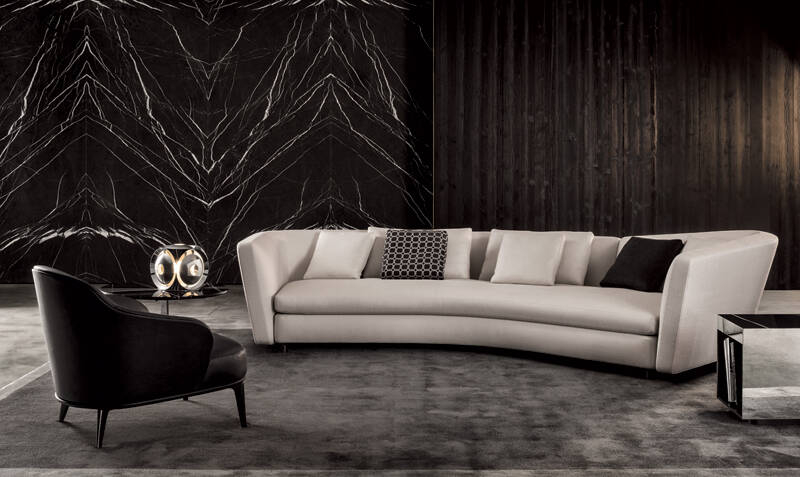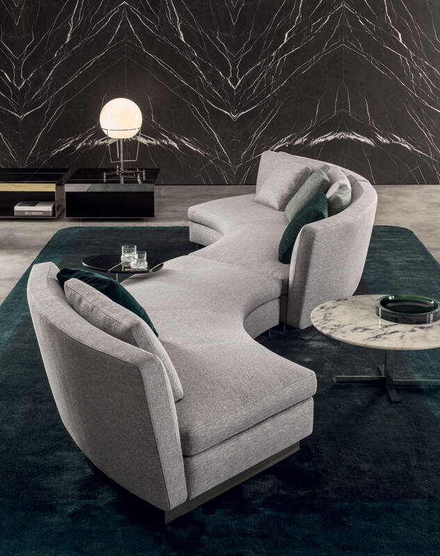 Seymour sofa stands out for its soft welcome and sensual elegance, inspired by dynamic, sinuous architecture.The collection makes it possible to create both fixed sofas and linear or L-shaped configurations, reflecting classic or more contemporary interpretations of the living room. The curved elements emphasise