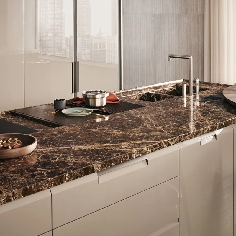 The Shape kitchen from Poliform is a model inspired, for practical reasons, by handleless kitchens, with a new and contemporary design. With the kitchen Shape by Poliform, you can see a moulding running across the bases and columns, resulting in a tapered cut, into which the characteristic handle is inserted. Contact us for more information.