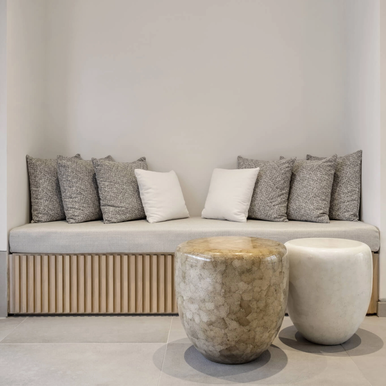 Designed by Reda Amalou, the DOT Collection is a contemporary interpretation of the traditional Asian stool, with a clean and minimalist line. The DOT is finished using a traditional hand applied lacquer. A minimum of 18 coats, sanded down between each coat, are required to obtain the perfect finish. This process gives depth and intensity to the colour. The DOT by Reda Amalou is available in three sizes and a wide variety of colours.