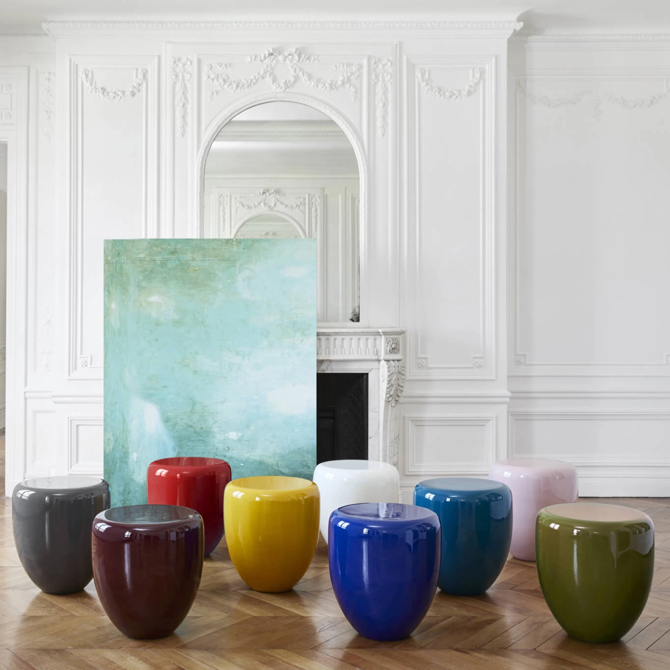 Designed by Reda Amalou, the DOT Collection is a contemporary interpretation of the traditional Asian stool, with a clean and minimalist line. The DOT is finished using a traditional hand applied lacquer. A minimum of 18 coats, sanded down between each coat, are required to obtain the perfect finish. This process gives depth and intensity to the colour. The DOT by Reda Amalou is available in three sizes and a wide variety of colours.