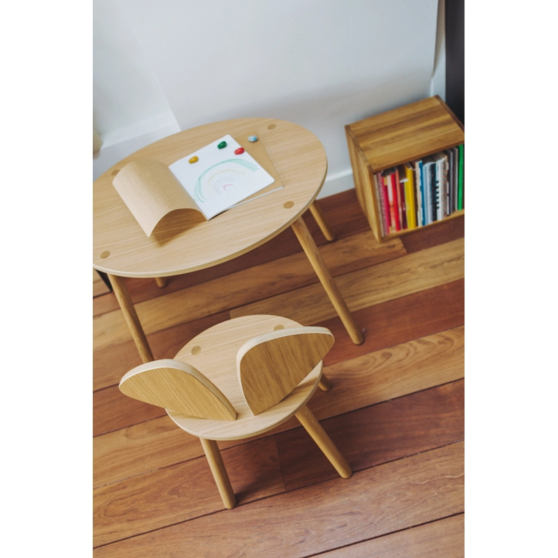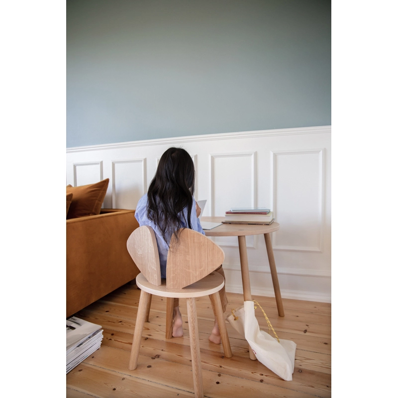 Imagined by Nofred, this chair has been designed for children aged 6 to 10. It can complement the Mouse School Set table and chair to create a complete space for working, drawing or creating with siblings or friends. Functional, attractive and robust, the Mouse chair stands out for its high-quality craftsmanship in durable material. Its two big ears make it an attractive chair for children, while also appealing to parents. So the chaise Mouse will look equally at home in a child's bedroom or the living room.