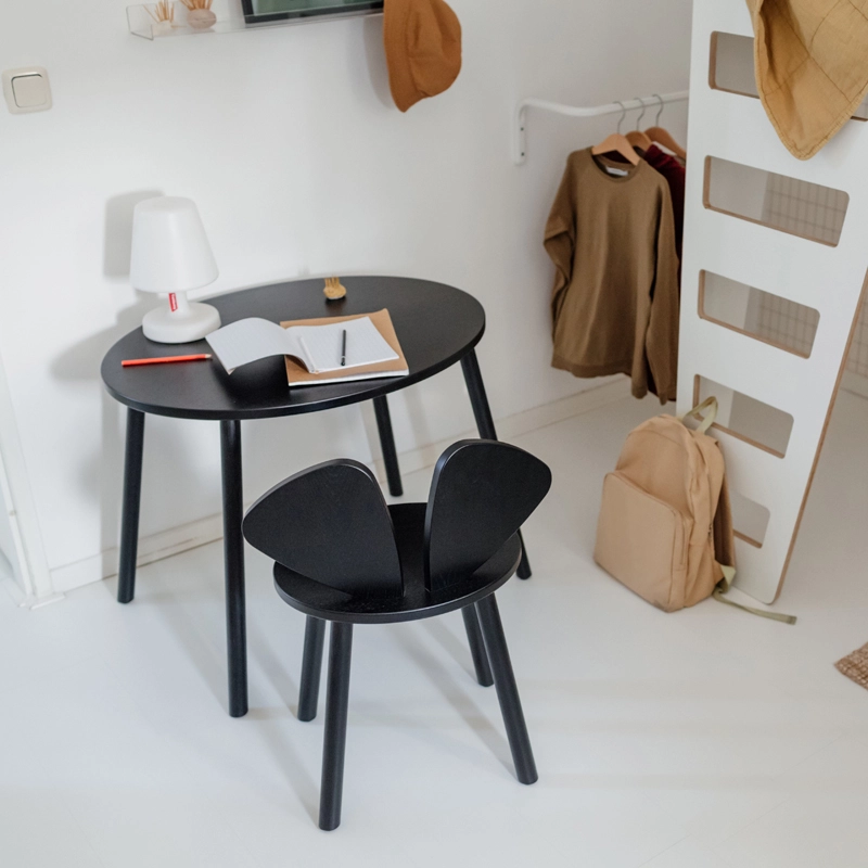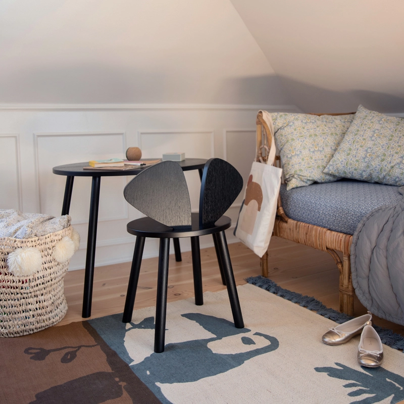Imagined by Nofred, this chair has been designed for children aged 6 to 10. It can complement the Mouse School Set table and chair to create a complete space for working, drawing or creating with siblings or friends. Functional, attractive and robust, the Mouse chair stands out for its high-quality craftsmanship in durable material. Its two big ears make it an attractive chair for children, while also appealing to parents. So the chaise Mouse will look equally at home in a child's bedroom or the living room.
