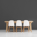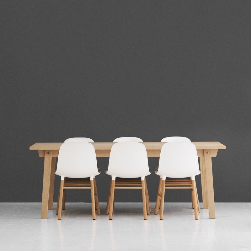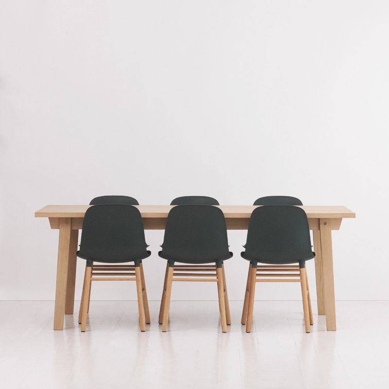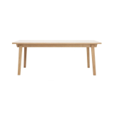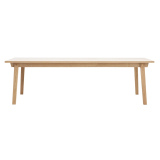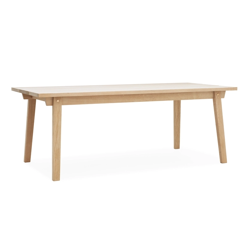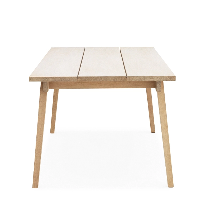 Designed by Hans Horneman for Normann Copenhagen, Slice is a beautiful, timeless table in soaped solid oak. It has a sleek and contemporary design and the designer pays special attention to detail. The tray is made up of three boards separated by a small space that breaks the unity and brings a touch of originality. With its natural finishes and simple shapes, the Slice table can be used in a dining room, kitchen, restaurant or even as a desk.