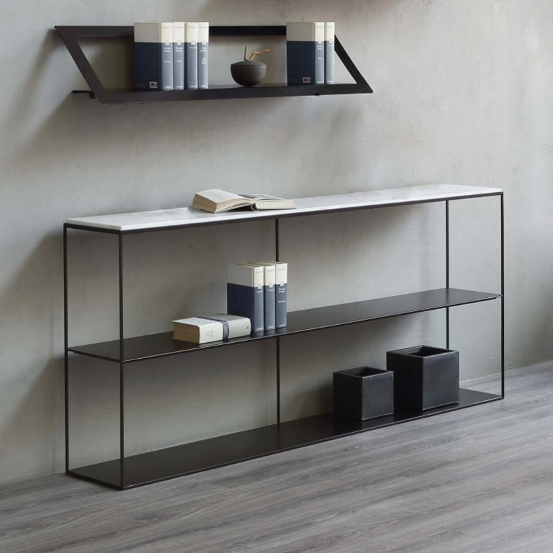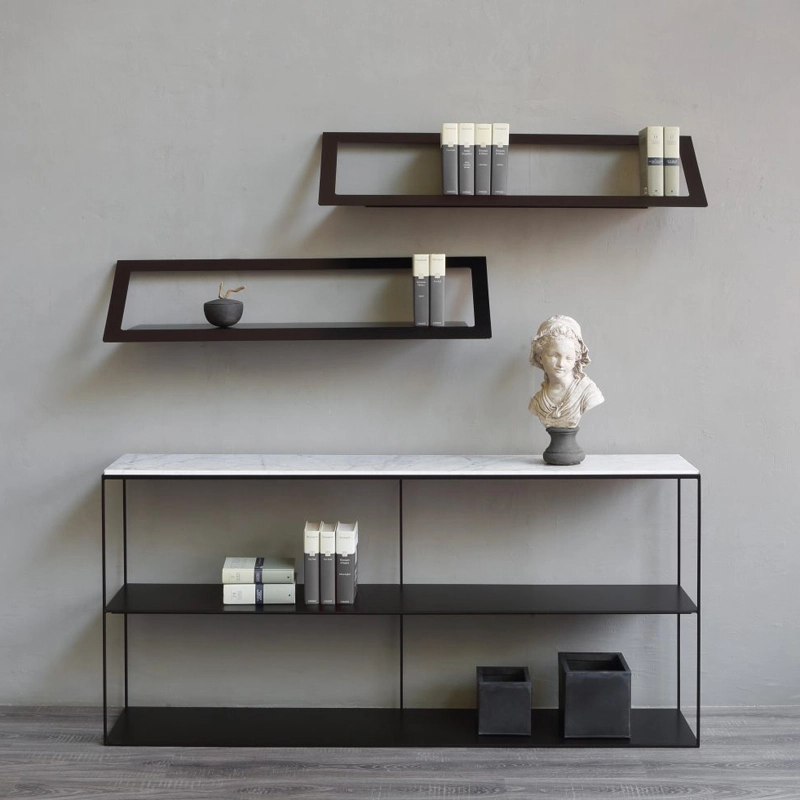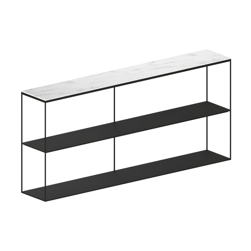 A raw and sophisticated spirit inhabits this shelving unit that mixes metal and marble. Slim Marble is made up of three trays, linked by a fine aerial structure. The top shelf is made in a beautiful white Carrara marble. The two lower shelves are made from sheet steel. The Slim Marble shelf will look great in a living room or hallway, adding an architectural touch. Slim Marble is completely in line with the philosophy of the Zeus brand: to create things imbued with simplicity and authenticity, that are both functional and economical. A quest for the essential through great mastery of materials and unrivalled metalwork.