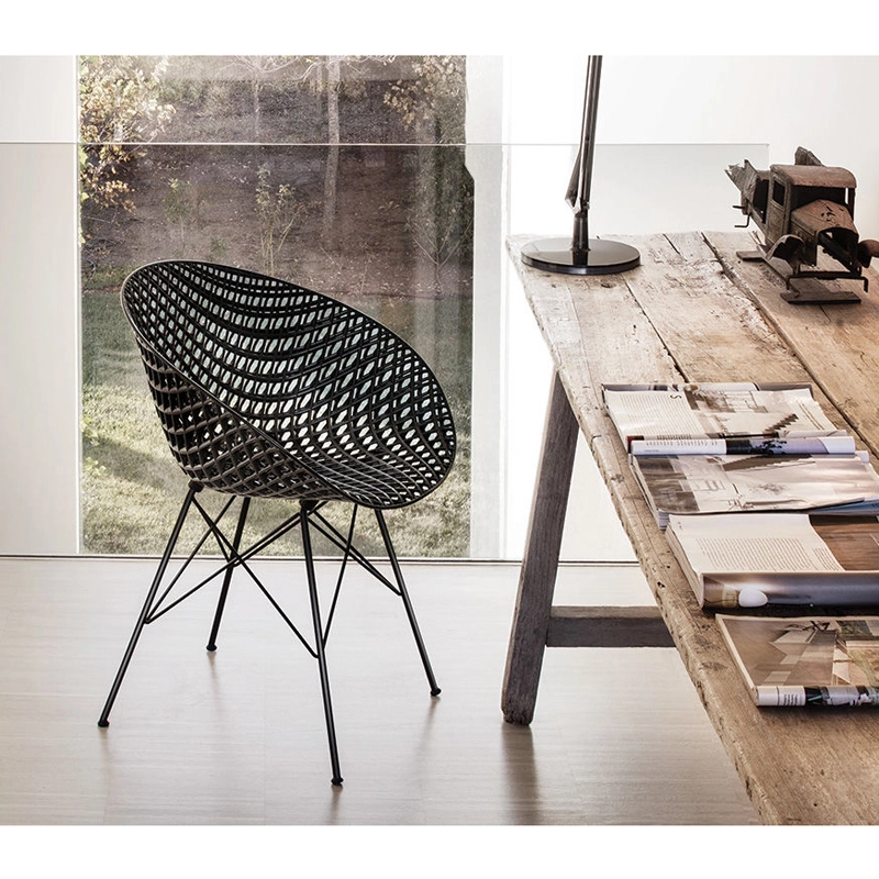 Matrix chair is born of the constant dialogue between design and technological innovation. This state-of-the-art chair is characterised by its three-dimensional latticework shell, which gives it lightness and sophistication. The result of a long research and design process, this innovative seat is made using injection technology. The polycarbonate layers create a structure that takes the form of wire mesh. Thanks to the combination of this exclusive technology and the Japanese designer's identity,