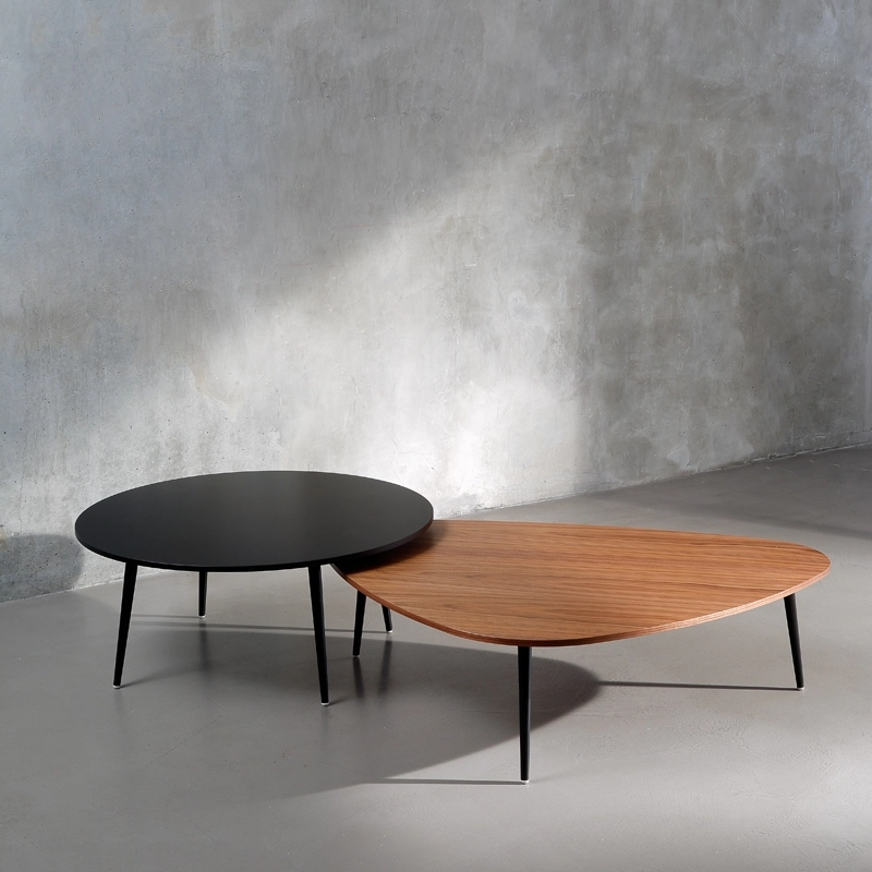 Soho is a series of design coffee tables and side tables created by new French publisher COEDITION. The collection is distinguished by its sober and light lines, combining tradition and modernity. Each small table is equipped with a set of three or four thin metal legs with a slightly conical shape. These are combined with a round, oval or triangular top, made in natural walnut veneer or lacquered and available in different sizes. The "side table" versions are available in different heights, as are the coffee tables, allowing you to combine several models to create a very personal composition that suits your living room.