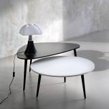 Soho is a series of coffee tables and side tables created by the new French furniture brand COEDITION. The collection is distinguished by its sober and light lines, combining tradition and modernity. Each small table is equipped with a set of three or four thin metal legs with a slightly conical shape. These are combined with a round, oval or triangular top, made in natural walnut veneer or lacquered and available in different sizes. The "side table" versions are available in different heights, as are the coffee tables, allowing you to combine several models to create a very personal composition that suits your living room.