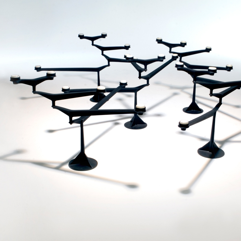 Tom Dixon drew inspiration for the sturdy components of Victorian steam engines to achieve the unique aesthetic of the Spin candelabra. It is available in two versions: one designed to be placed on your dining room table, the other to be placed delicately on the floor in your living room, for example. Spin is made of cast iron, which creates stability, solidity, and authenticity. This candelabra exudes elegance and refinement. The five points of this candelabra turn on their axis in different positions, from where the name "Spin" originates, meaning you can adapt it in line with your desires. Spin candelabra can hold all types of candles such as traditional and cylindrical candles and tea lights, which infuse substance into the space as they flicker and glow.