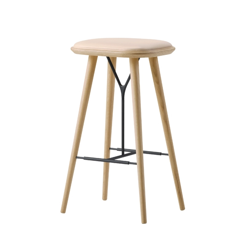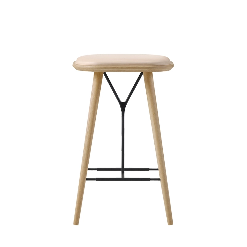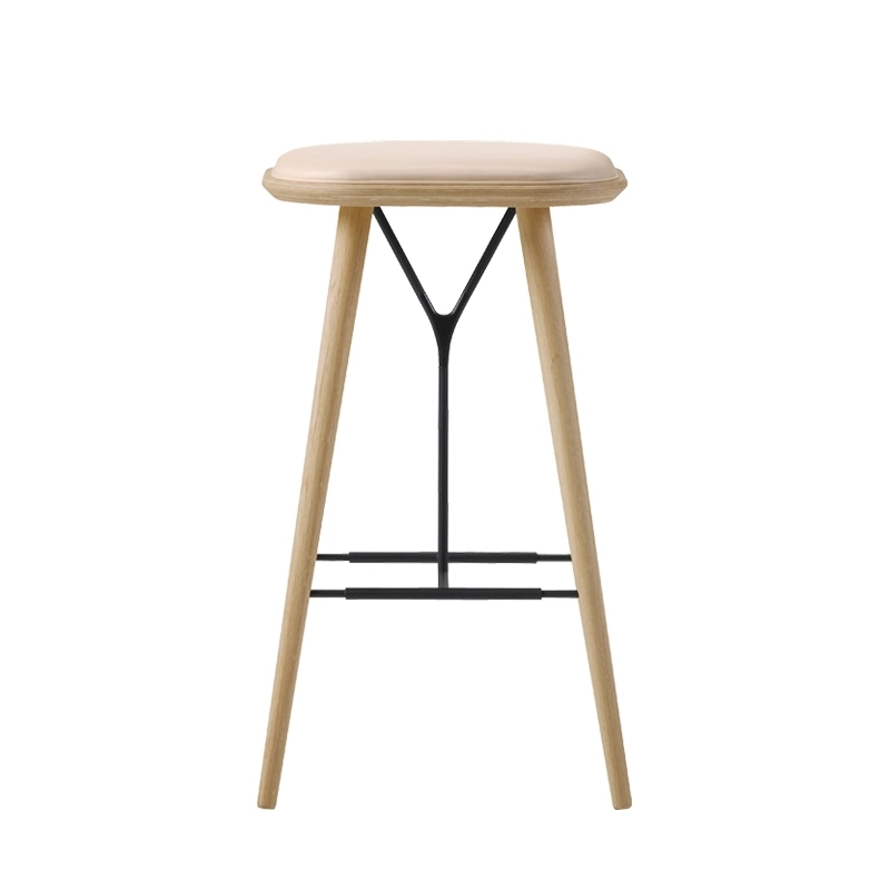 Spine is balanced and uncluttered. Wood, leather and metal detailing fuse perfectly to create a bar stool that is comfortable yet sophisticated, with a strong Scandinavian feel. The