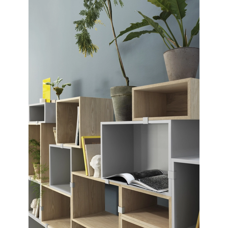 Stacked is a very complete storage system, made up of modules of different sizes that can be easily assembled to create the exact piece of furniture you need. JDS Architects wanted to create a system that would meet all storage needs and would work in any type of interior.For the different modules, the designers worked on the basis of the generic dimensions of the objects to be stored or exhibited, while making sure that each module size could be combined with others. Using the fixing clips, the modules can be easily assembled and disassembled to create a bookcase, room divider, sideboard or bedside table, for example. Stacked has become a must-have from the Muuto brand, featuring infinite storage potential!
