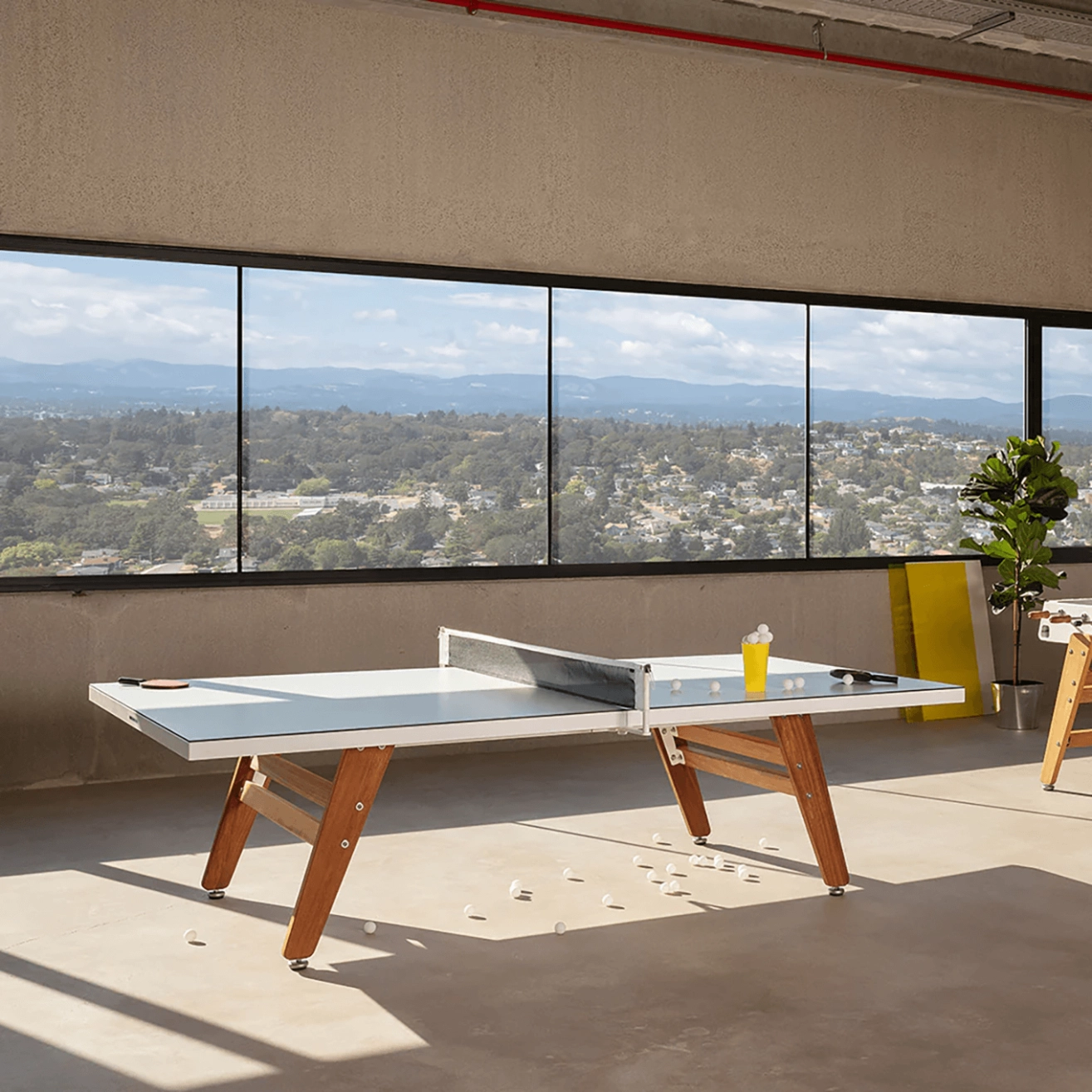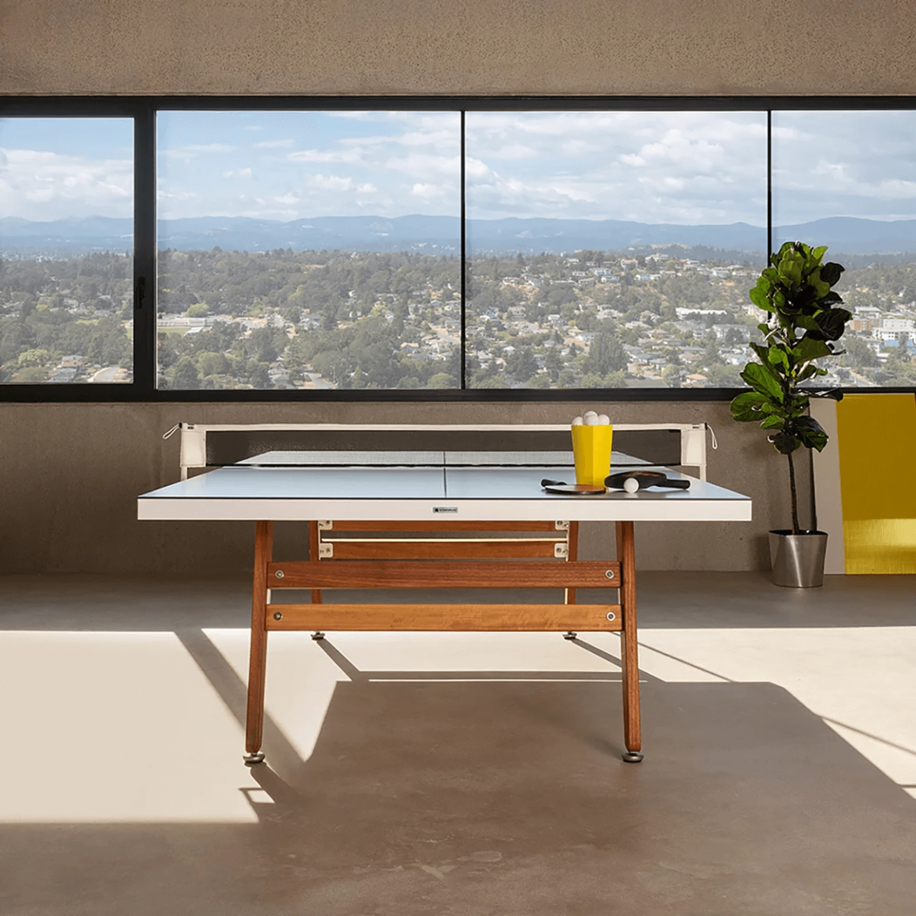 The pre-owned Stationary Ping Pong Table, designed by Rafael Rodríguez and produced by RS Barcelona, is a ping pong table that combines elegance, durability, and functionality. Whether for family tournaments in the garden or friendly matches between colleagues at the office, it stands out with its all-terrain design and excellent stability, ensuring optimal playability. Its refined design perfectly blends performance and aesthetics, true to the spirit of RS Barcelona. Built with high-quality, weather-resistant materials, it is perfectly suited for both outdoor and indoor use. Versatile and long-lasting, the Stationary Ping Pong Table is a premium leisure piece, ideal for creating friendly moments without compromising on game quality.