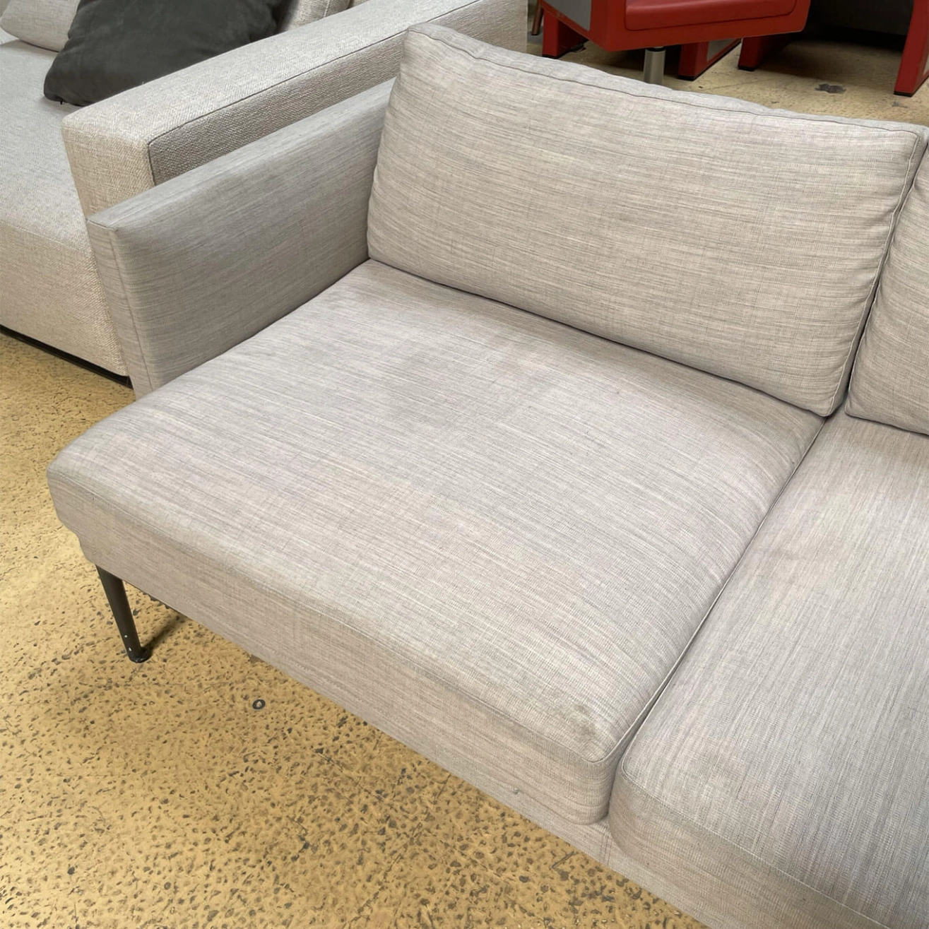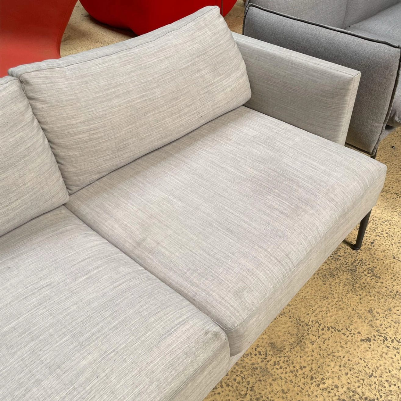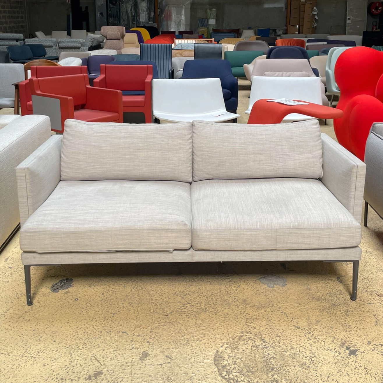 Arper, this fully upholstered sofa features a structure covered in fabric, leather, coated fabric, or customer-supplied material, with the possibility of single-colour or two-tone finishes. The seat and back cushions, also upholstered and removable, provide optimal comfort while allowing easy maintenance. With its clean lines and balanced proportions, the Steeve sofa brings an elegant and timeless presence to contemporary living rooms, reception areas, and high-end professional environments.