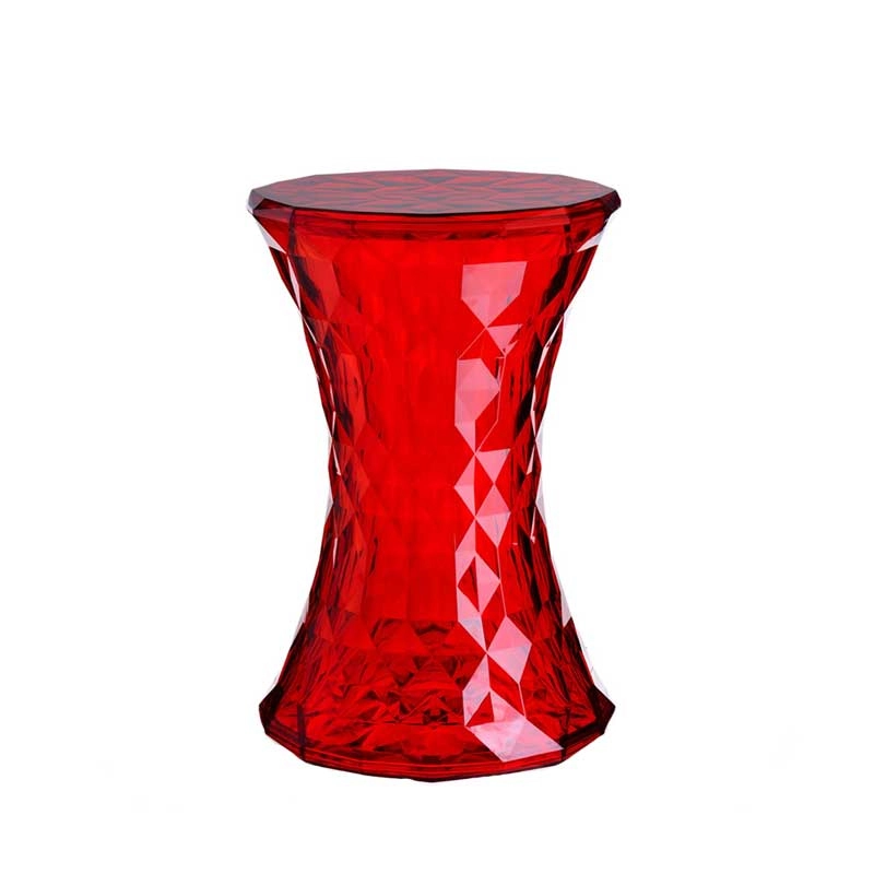 Produced by Kartell, Stone is a stool with simple shapes and a truly precious appearance. Created by Marcel Wanders, this low-height stool is made in a one-piece mould, with pure, linear, and symmetrical shapes, reminiscent of those of a clepsydra. The stool's surface is truly extraordinary: irregular, it features numerous geometric facets which create a light effect which, in turn, creates a play of colours, giving it the appearance of a diamond. The Stone stool is available in the shades of precious stones, echoing its precious design: transparent, smoke, and red.