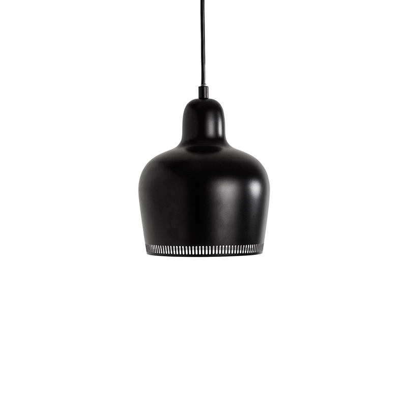 Dubbed the "Golden Bell", the suspension A330S has a sculptural quality that can be appreciated whether the light is on or off. With its golden reflections, the perforated edge of the A330S suspension light creates a memorable halo effect and prevents glare. Crafted from a single piece of brass or steel, the elegant "Golden Bell" was created by Aino and Alvar Aalto for the interior of The Savoy restaurant in Helsinki in 1937 and was subsequently displayed in the Finnish pavilion at the Paris World Fair the same year. Edited by Artek, the "Golden Bell" suspension embodies the clean aesthetic characteristic of Alvar Aalto, while the light it provides is both warm and diffused.