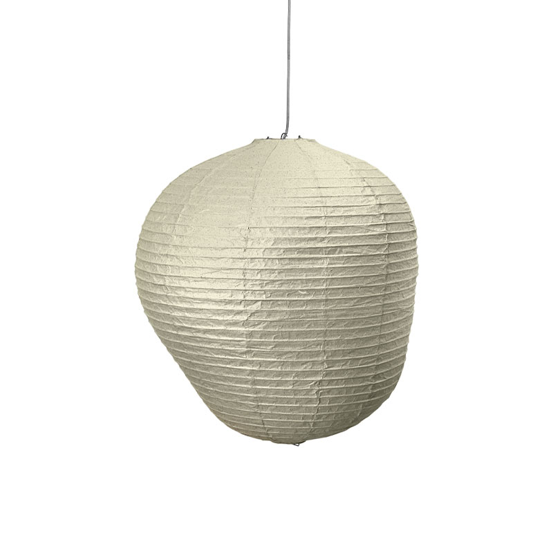 Published by Ferm Living, the Kurbis Ø 80 lampshade revisits the rice paper lantern with elegance and modernity. Made from delicate Washi paper, this shade is inspired by the natural curves of gourds and pumpkins, adopting an organic and slightly asymmetrical silhouette. This unique shape gives Kurbis Ø 80 a distinctive character that stands out from traditional shapes. When the light shines through the Washi paper, this Kurbis Ø 80 lampshade casts a soft, soothing glow, creating a warm and welcoming ambience in any room. Kurbis is available in three sizes - 40, 60 and 80 cm in diameter - to suit different spaces. Thanks to these varied dimensions, you can create superb lighting compositions by combining several lampshades of different sizes.
